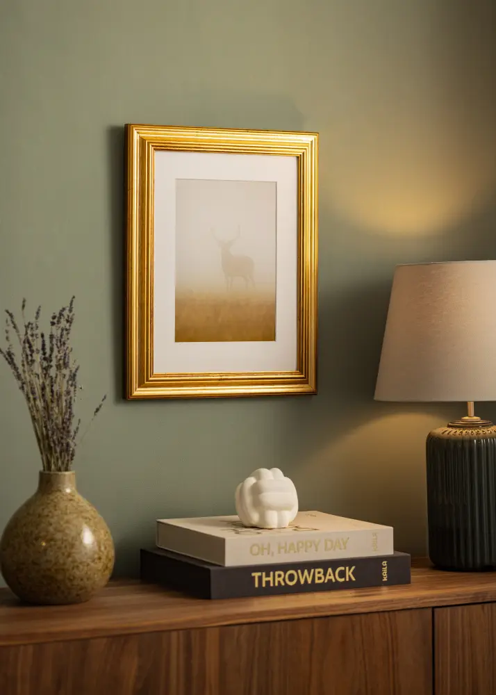 Cadre Venus Or est un cadre photo élégant qui offre un encadrement parfait pour vos images et œuvres d'art les plus aimées. Avec sa couleur dorée chaude et ses nuances subtiles, il dégage une expression intemporelle qui convient à la plupart des maisons et environnements. Ce cadre a une surface légèrement vieillie, ce qui contribue à son apparence classique et sophistiquée.