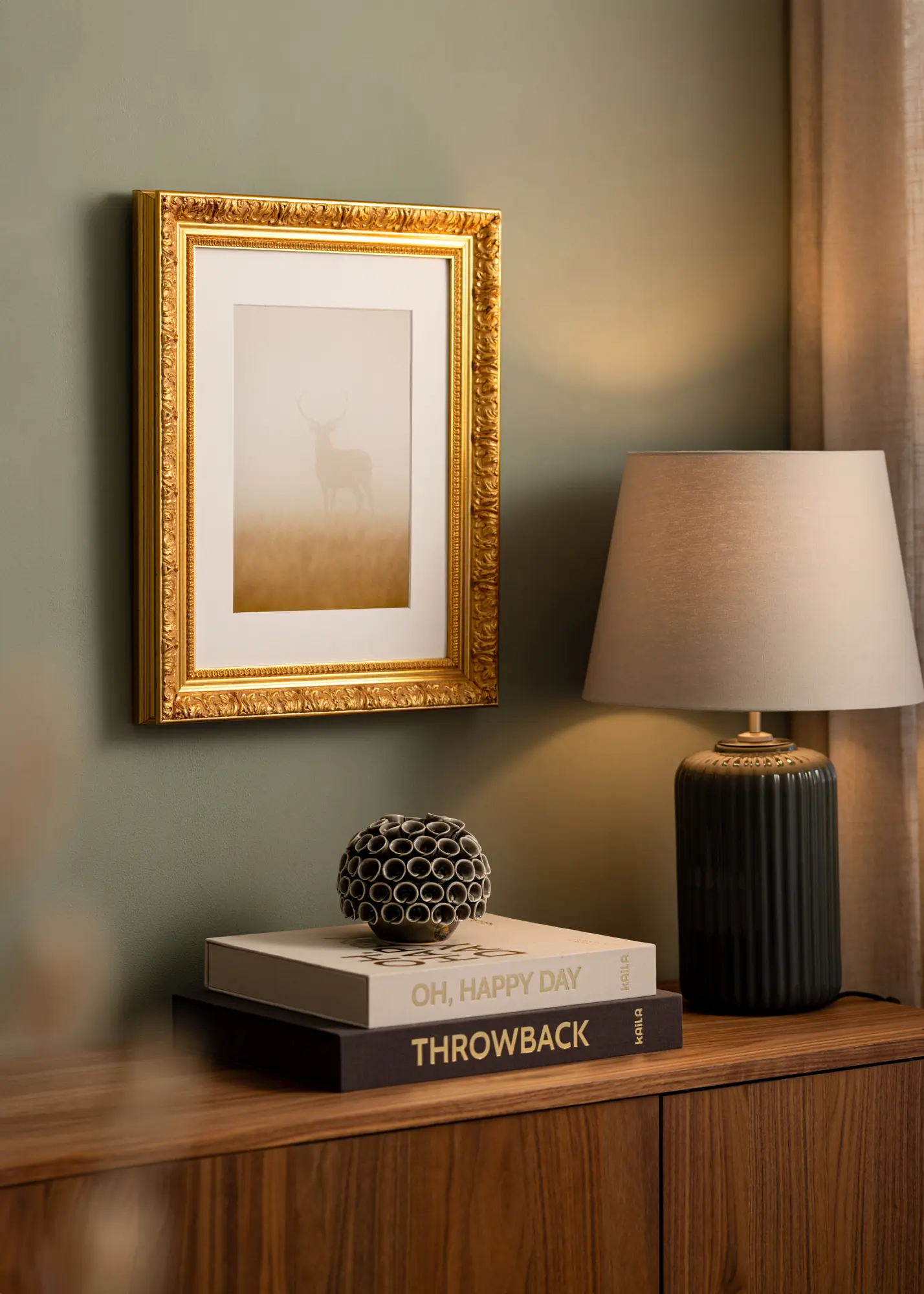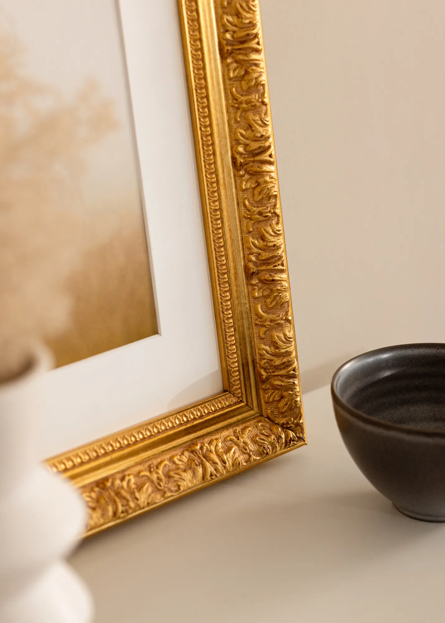 Le cadre Vesta Or est la solution parfaite pour ceux qui recherchent un encadrement élégant et intemporel pour leurs photos préférées. Avec sa couleur or classique et ses ornements détaillés, ce cadre photo apporte une sensation de luxe et de tradition à n'importe quelle pièce. La finition antique, associée à de subtiles touches de rouge, crée une atmosphère chaleureuse et accueillante qui complète à la fois les styles d'intérieur modernes et classiques.