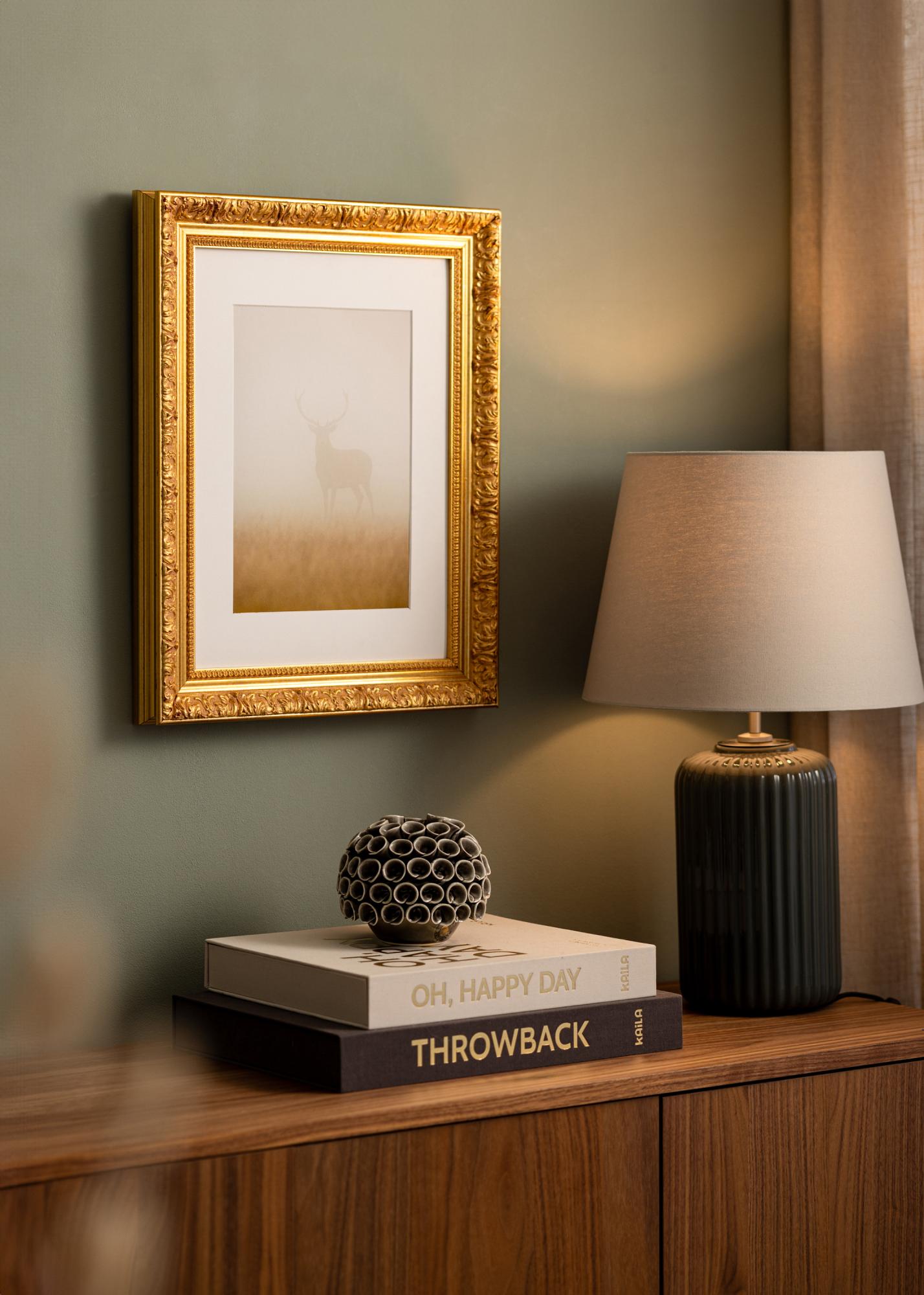 Un des grands avantages du Cadre Vesta Or est la possibilité de le commander dans la taille de votre choix. Cela signifie que, que vous ayez une œuvre d'art large ou une petite photo, vous pouvez obtenir un cadre parfaitement adapté qui met en valeur votre sujet de la meilleure manière. Il est cependant important de noter que, puisque ce produit est sur mesure, il n'est pas possible d'annuler l'achat après commande.