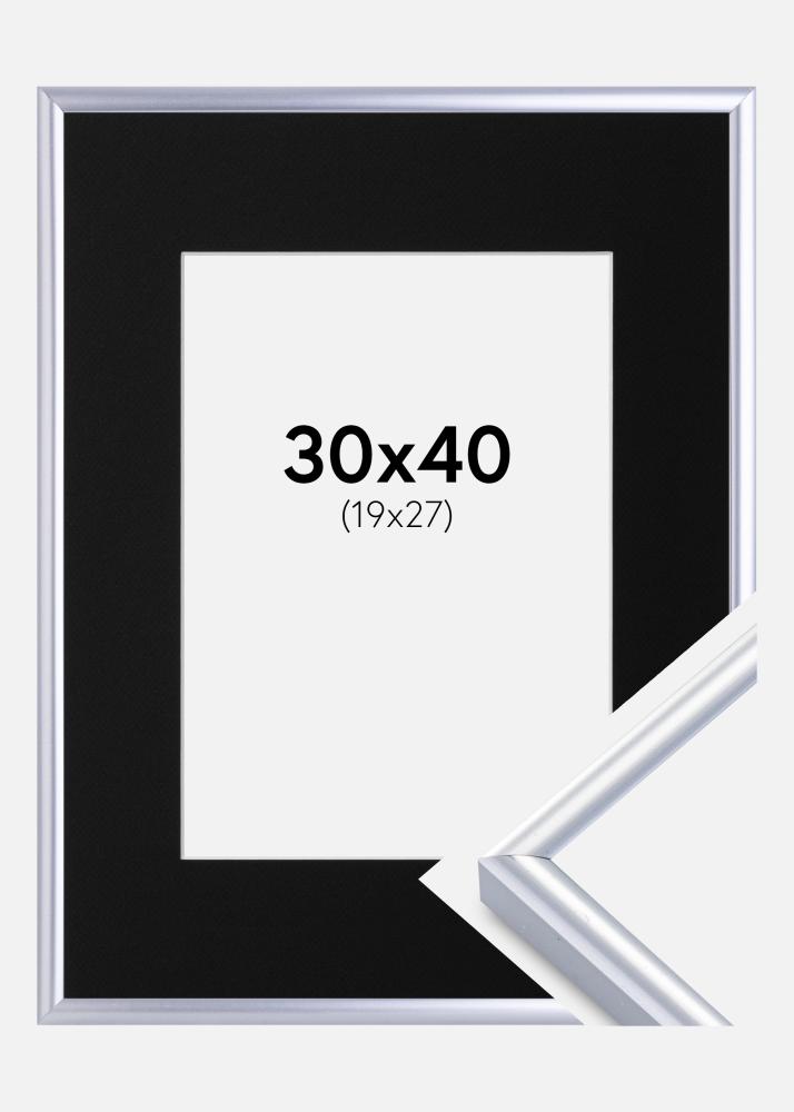 Cadre Victoria Argent 30x40 cm - Passe-partout Noir 20x28 cm
