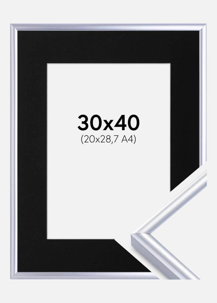 Cadre Victoria Argent 30x40 cm - Passe-partout Noir 21x29,7 cm