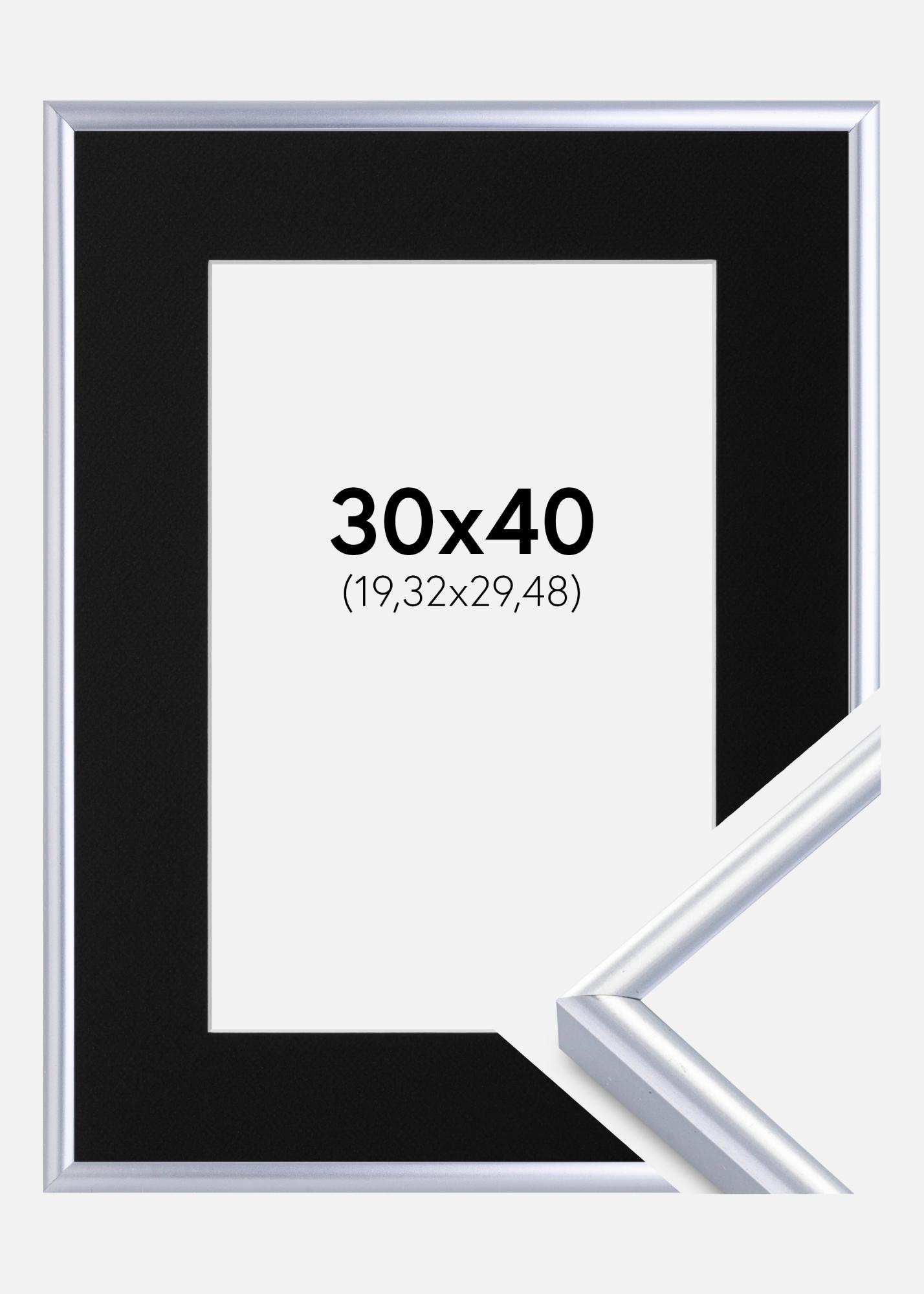 Cadre Victoria Argent 30x40 cm - Passe-partout Noir 8x12 pouces