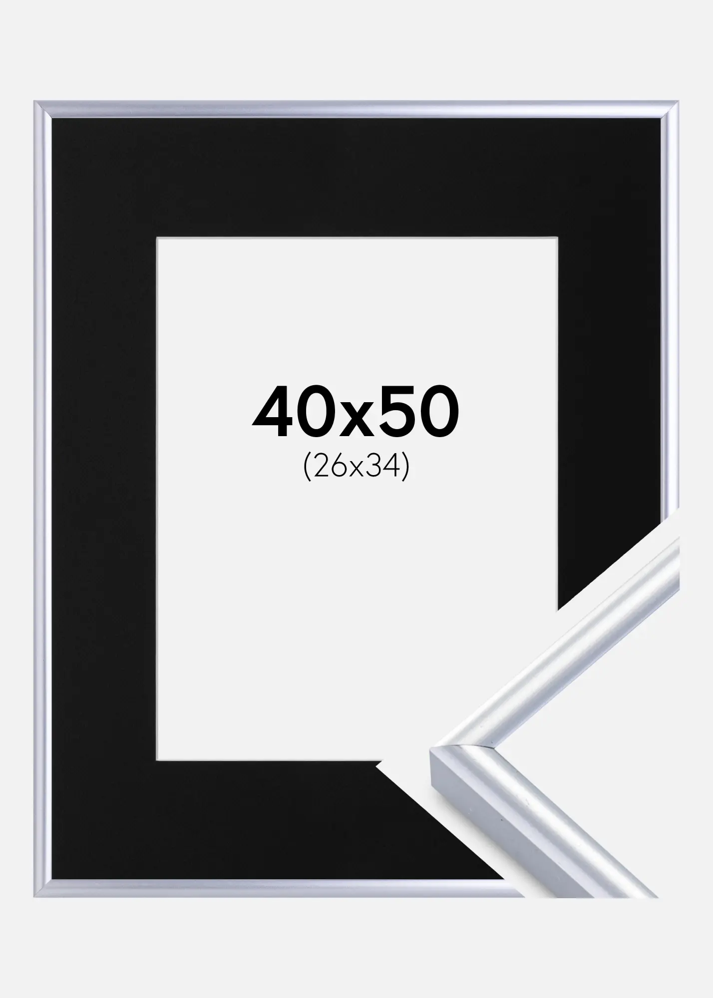 Cadre Victoria Argent 40x50 cm - Passe-partout Noir 27x35 cm