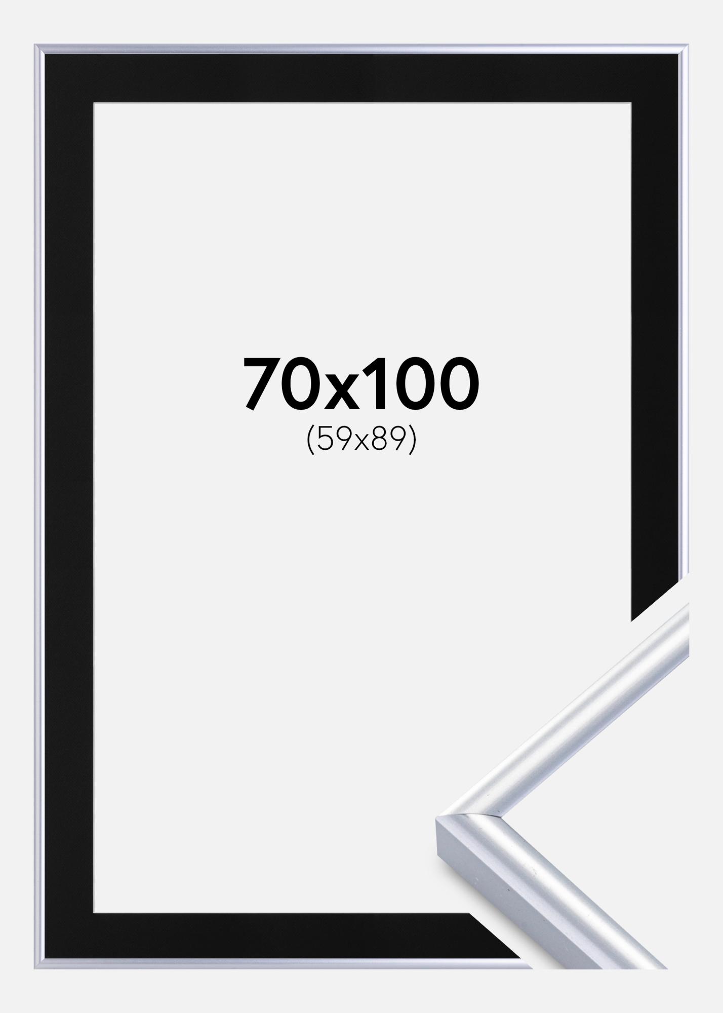 Cadre Victoria Argent 70x100 cm - Passe-partout Noir 60x90 cm