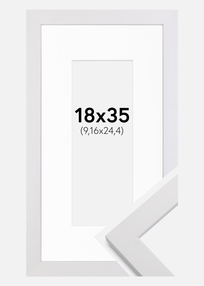 Cadre White Wood 18x35 cm - Passe-partout Blanc 4x10 inches