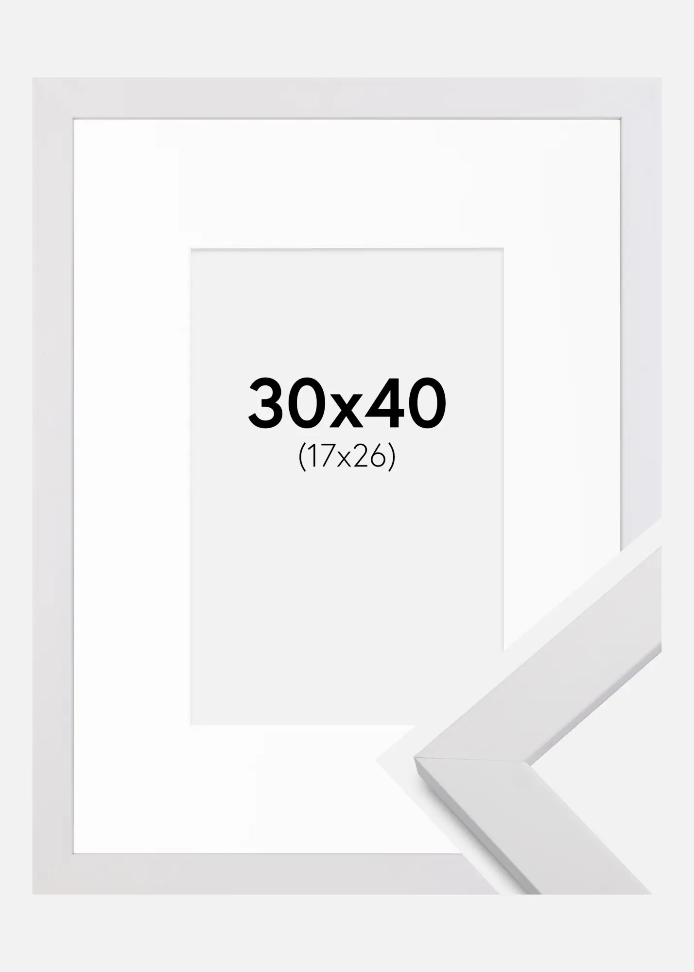 Cadre White Wood 30x40 cm - Passe-partout Blanc 18x27 cm
