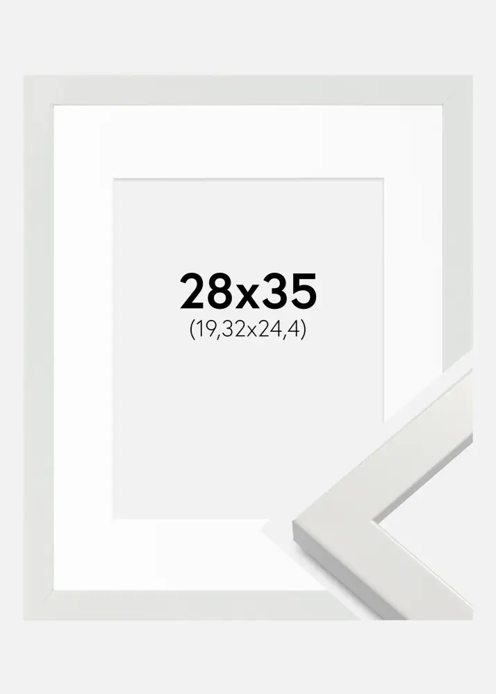Cadre White Wood Glossy 28x35 cm - Passe-partout Blanc 8x10 inches
