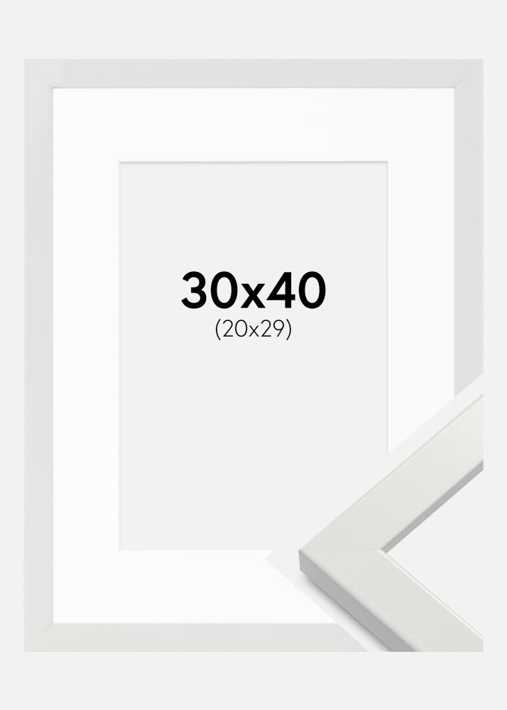 Cadre White Wood Glossy 30x40 cm - Passe-partout Blanc 21x30 cm