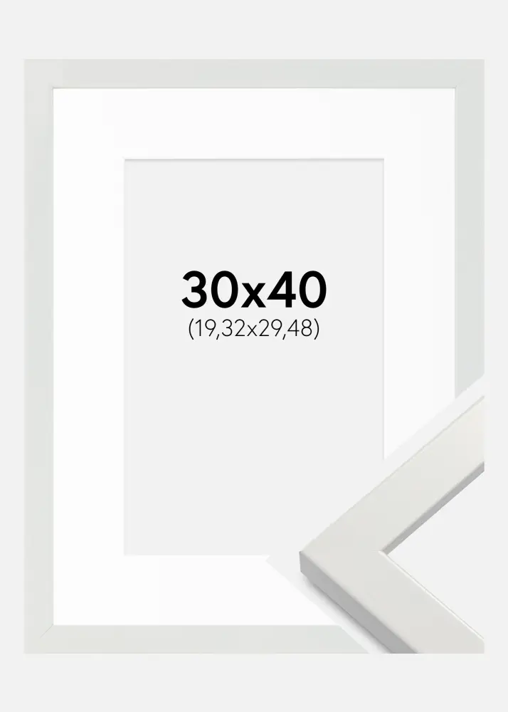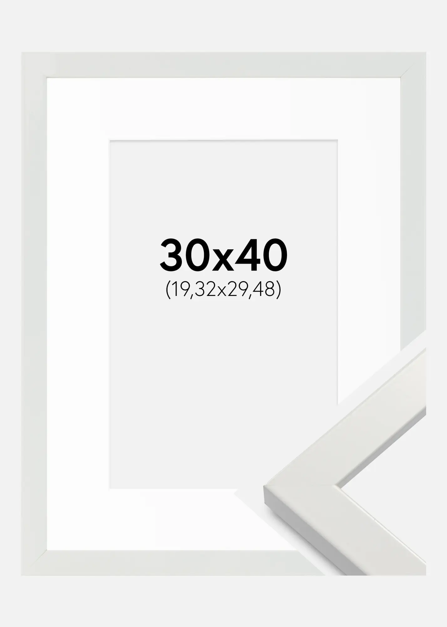 Cadre White Wood Glossy 30x40 cm - Passe-partout Blanc 8x12 inches
