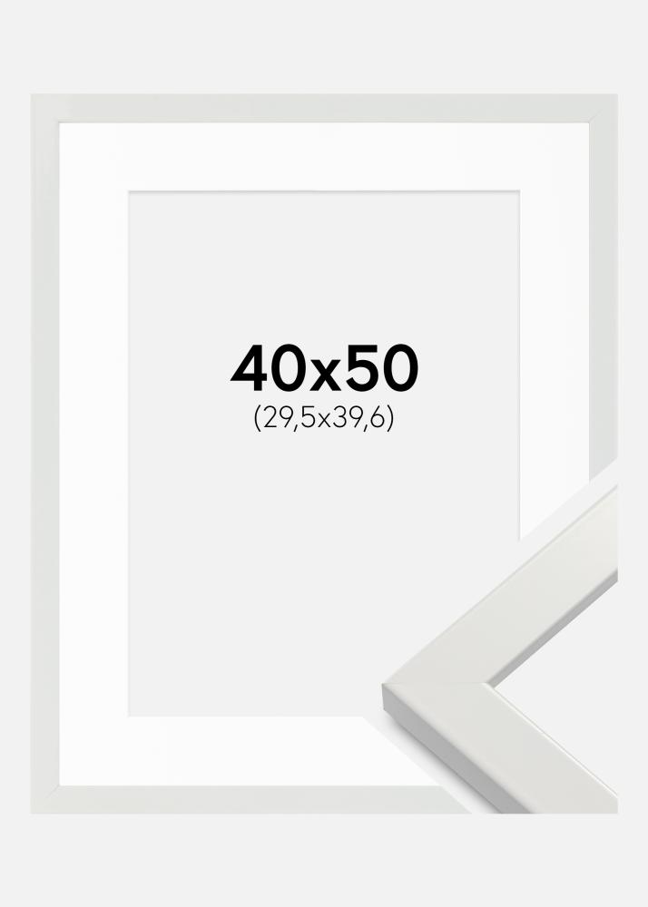 Cadre White Wood Glossy 40x50 cm - Passe-partout Blanc 12x16 inches