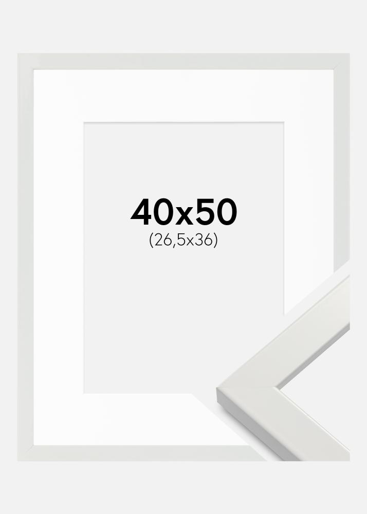 Cadre White Wood Glossy 40x50 cm - Passe-partout Blanc 27,5x37 cm
