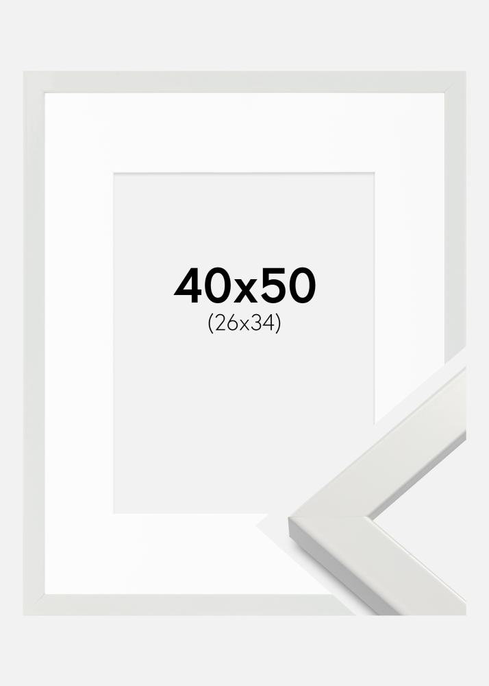 Cadre White Wood Glossy 40x50 cm - Passe-partout Blanc 27x35 cm