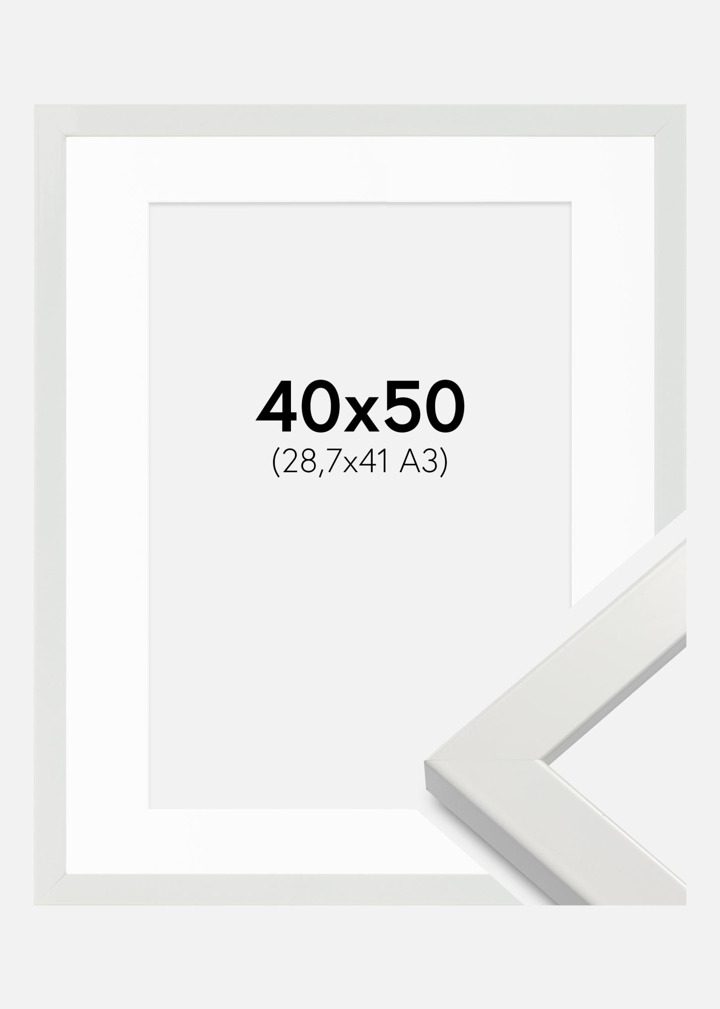 Cadre White Wood Glossy 40x50 cm - Passe-partout Blanc 29,7x42 cm (A3)