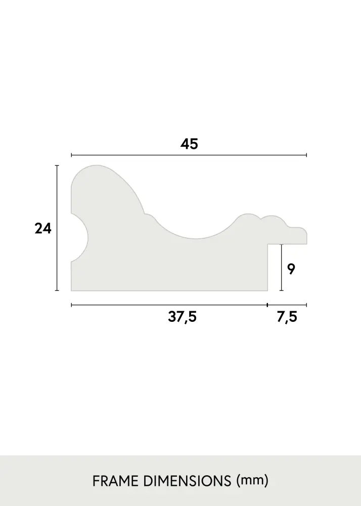Wenn Sie nach einem Rahmen suchen, der die Blicke auf sich zieht, ist Charleston definitiv etwas für Sie! Dieser prächtige, aber moderne Rahmen hat ein Profil, das aus mehreren symmetrischen Ebenen besteht und eignet sich hervorragend für ein dramatisches Bild oder ein Foto mit viel Tiefe. Wählen Sie zwischen den Farben Schwarz, Weiß, Silber und Gold.