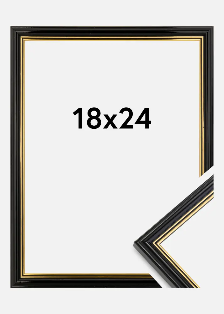 Si vous recherchez un cadre classique avec une apparence élégante à un bon prix, "Classic Noir" est ce que vous recherchez. Avec son profil arrondi noir orné de deux fines lignes dorées, c'est un