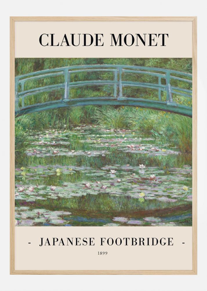 Ce poster représente l'une des œuvres les plus emblématiques de Claude Monet, 'Le Pont Japonais', peint en 1899. Il fait partie d'une série d'œuvres que Monet a créées dans son jardin à Giverny, où il a capturé la manière dont la lumière et les saisons changeaient le paysage. Cette peinture offre un aperçu de l'oasis privée de Monet, avec un pont verdoyant qui s'arque au-dessus d'un étang calme couvert de nénuphars. La riche texture et la variation de couleurs que Monet a magistralement capturées sur toile dans cette scène se transforment maintenant en une affiche qui nous permet d'admirer son travail et de ressentir une partie de la paix et de la beauté qu'il a vécues.
