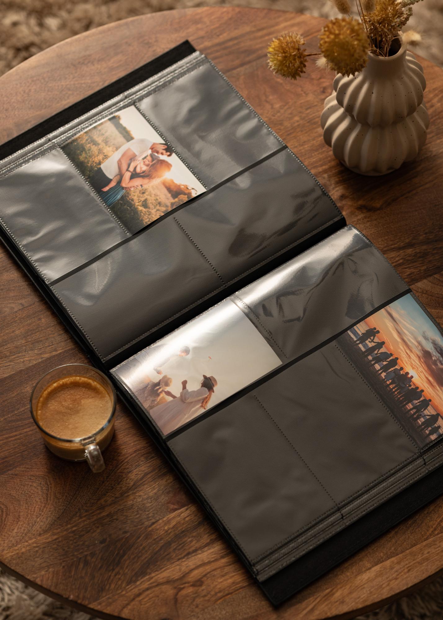 Ce qui rend cet album photo unique, ce sont ses pochettes photo pratiques, qui facilitent le montage et le remplacement des photos sans tracas. L'orientation des photos dans l'album est à la fois horizontale et verticale, ce qui vous donne la flexibilité d'organiser vos photos comme vous le souhaitez. Les pages noires créent un beau contraste avec vos photographies colorées et mettent en valeur chaque image de la meilleure façon possible.