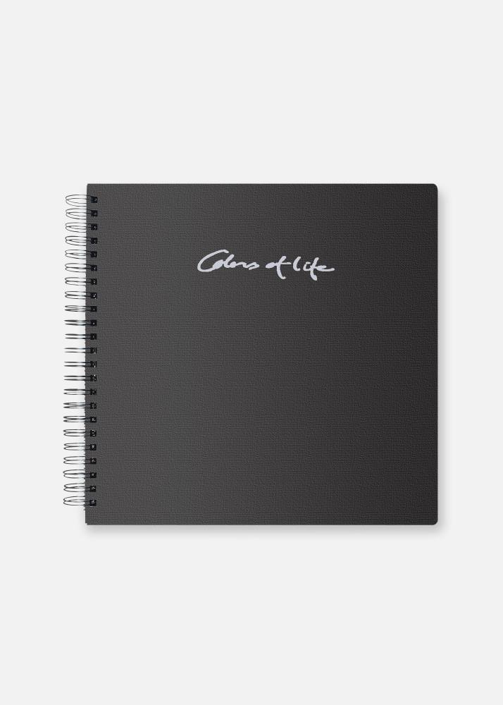 Un album à spirales de 30x30 cm avec 24 feuilles noires sans acide, prêt à être rempli de souvenirs ! Sur le devant de l'album se trouve le texte "Colors of life" en argent.