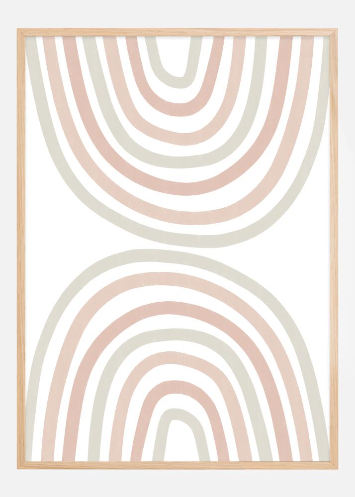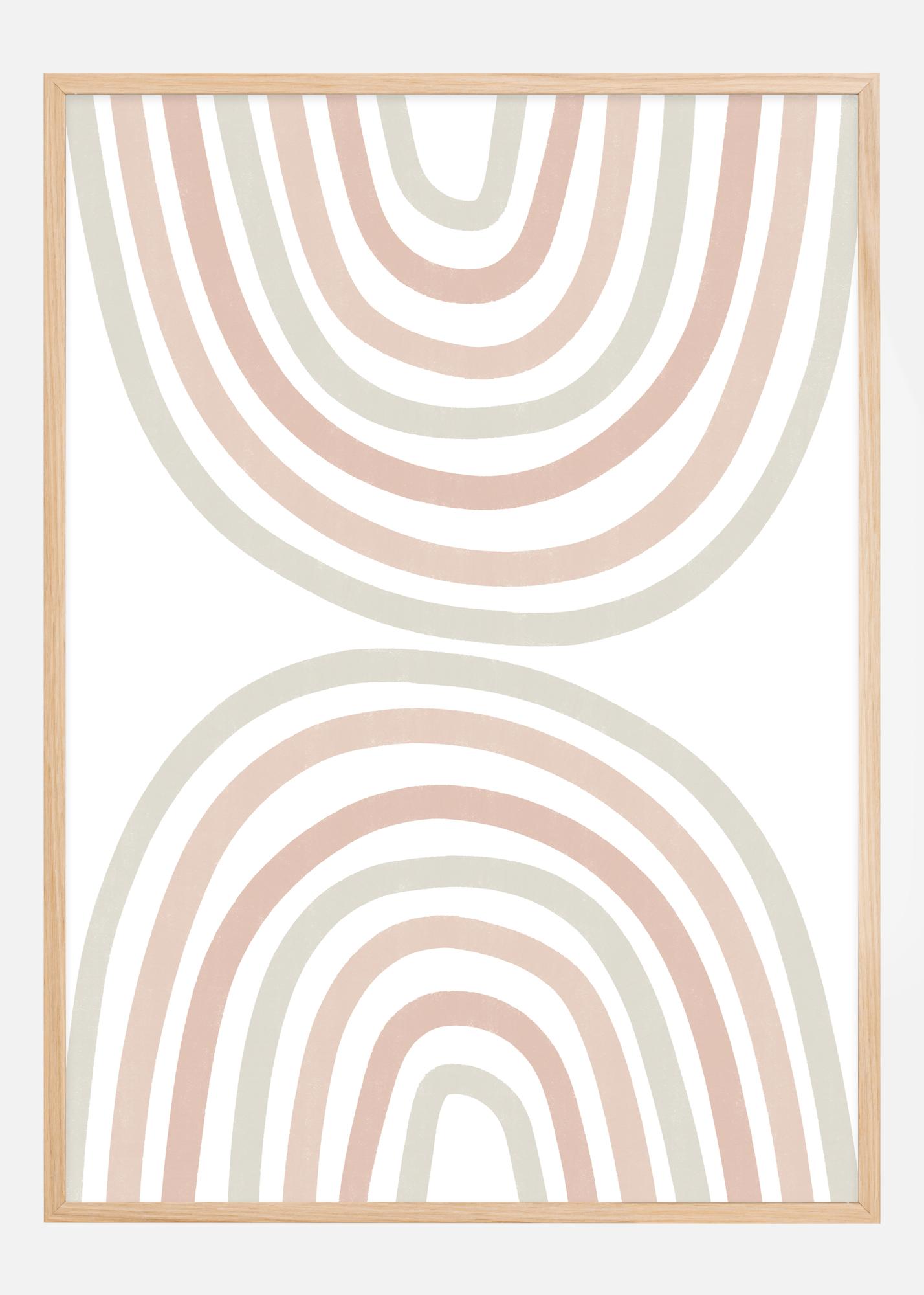 Cette affiche moderne et minimaliste, intitulée "Double Rainbow", présente une série d'arcs concentriques formant un double arc-en-ciel avec une palette de couleurs calme et relaxante. Les tons doux de bleu, beige et terracotta sont parfaitement équilibrés pour créer une sensation d'harmonie et de tranquillité dans votre espace. Les lignes épurées et le design simple font de cette impression un ajout élégant à tout design d'intérieur moderne.