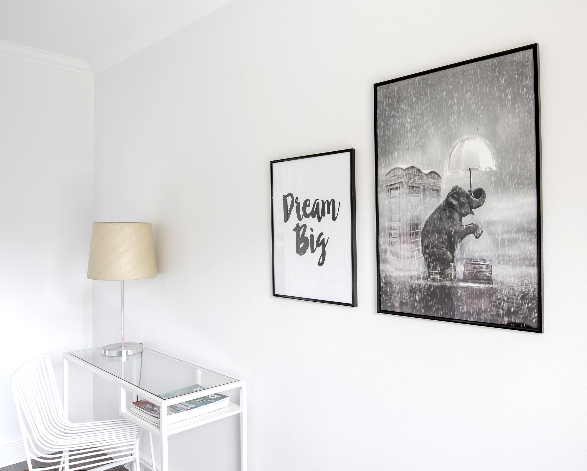 Le seul qui puisse réellement se mettre en travers de vos rêves, c'est vous-même. Changez votre voix intérieure et rappelez-vous que vous avez le droit (et vous devriez) de rêver grand avec ce beau poster ! L'affiche présente un design élégant et simple avec le texte « Dream Big » en noir sur un fond blanc. Complétez-le volontiers avec un passe-partout noir ou blanc et un cadre coloré. Choisissez parmi 6 formats différents.