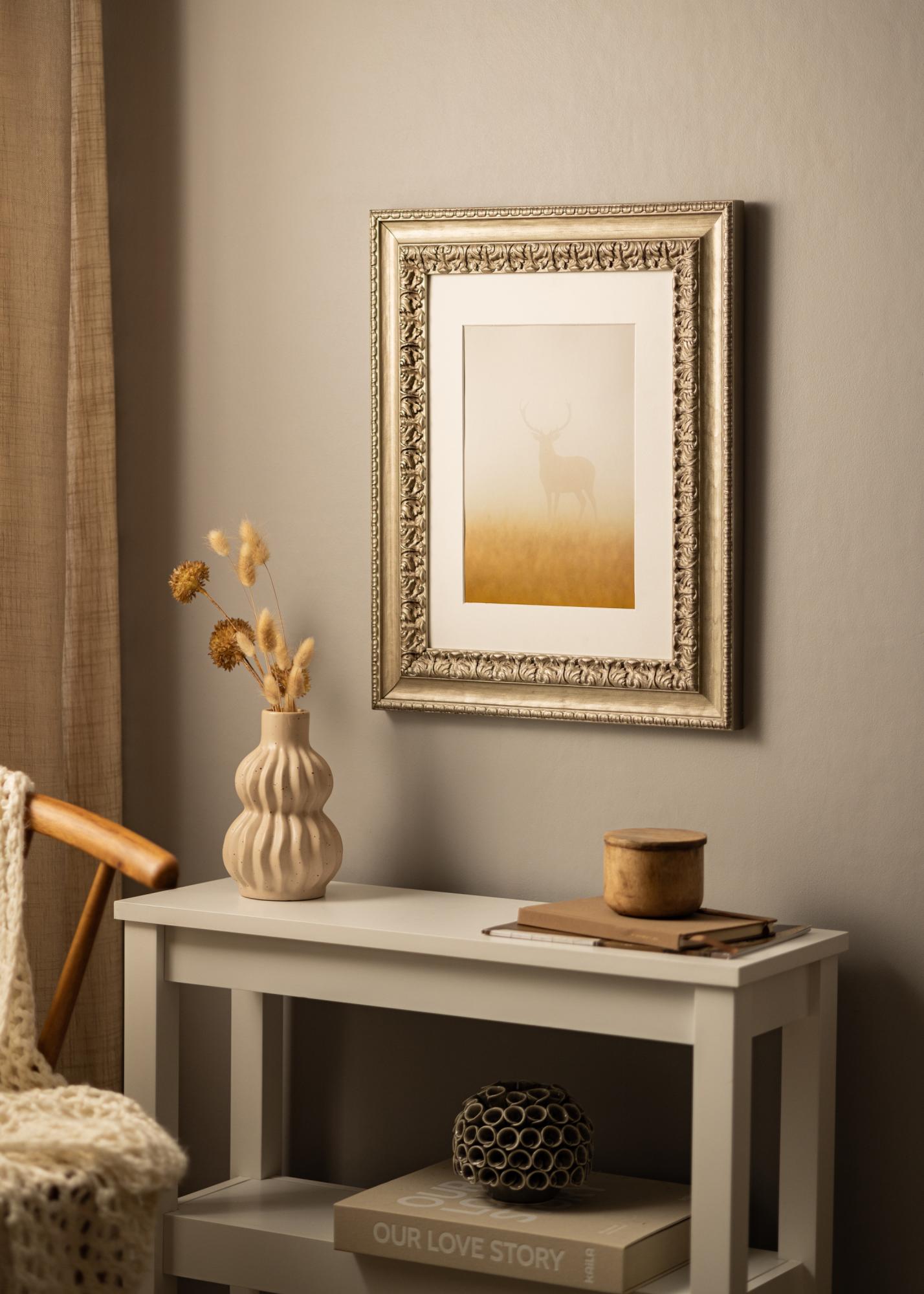 Le cadre Drottningholm Argent III est un élégant cadre photo qui offre un encadrement sophistiqué pour vos images et œuvres d'art les plus précieuses. Avec sa belle couleur argentée et sa moulure de cadre de 68 mm de large, ce cadre donne une impression saisissante dans n'importe quelle pièce où il est placé. La profondeur du cadre de 30 mm contribue à sa sensation de robustesse et en fait un choix stable pour les œuvres petites et grandes.