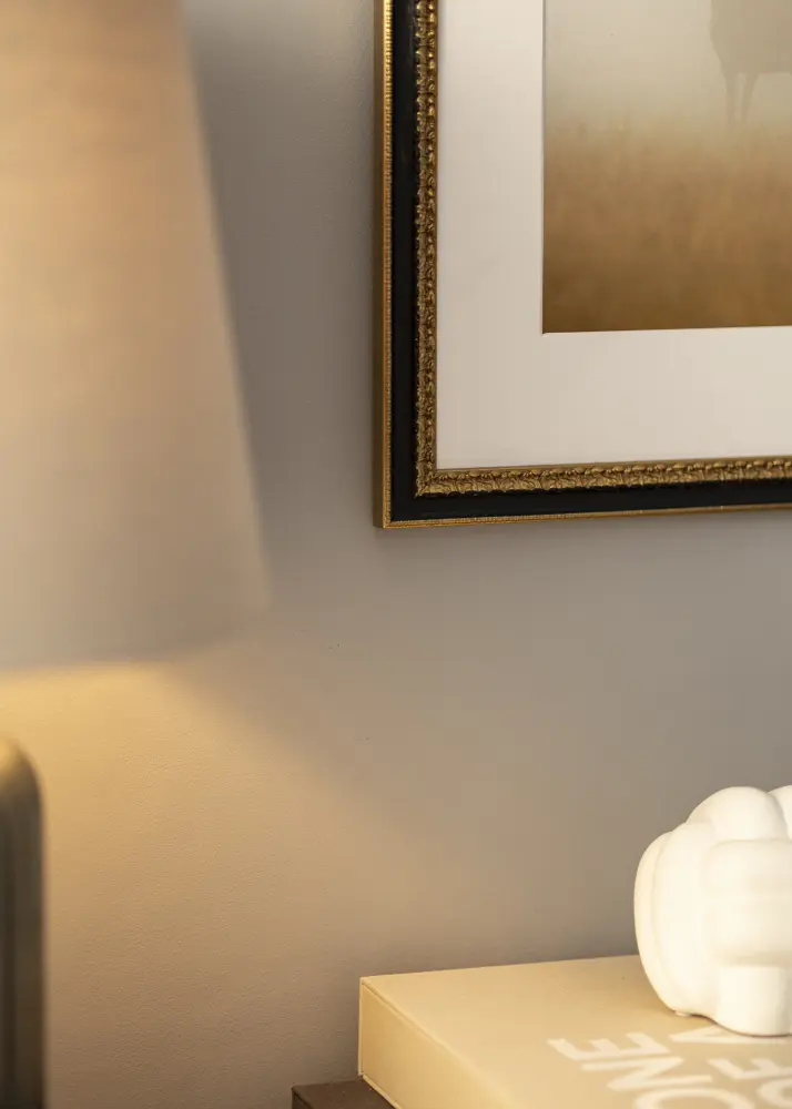 L'un des grands avantages du Cadre Drottningholm Or II est qu'il est fabriqué dans notre propre atelier, ce qui signifie que vous pouvez le commander sur mesure selon vos besoins. Cela vous permet de créer un encadrement personnalisé qui conviendra parfaitement à votre œuvre d'art ou photo. Veuillez noter cependant que, puisque le produit est fait sur mesure, il n'est pas possible d'annuler votre achat après commande.
