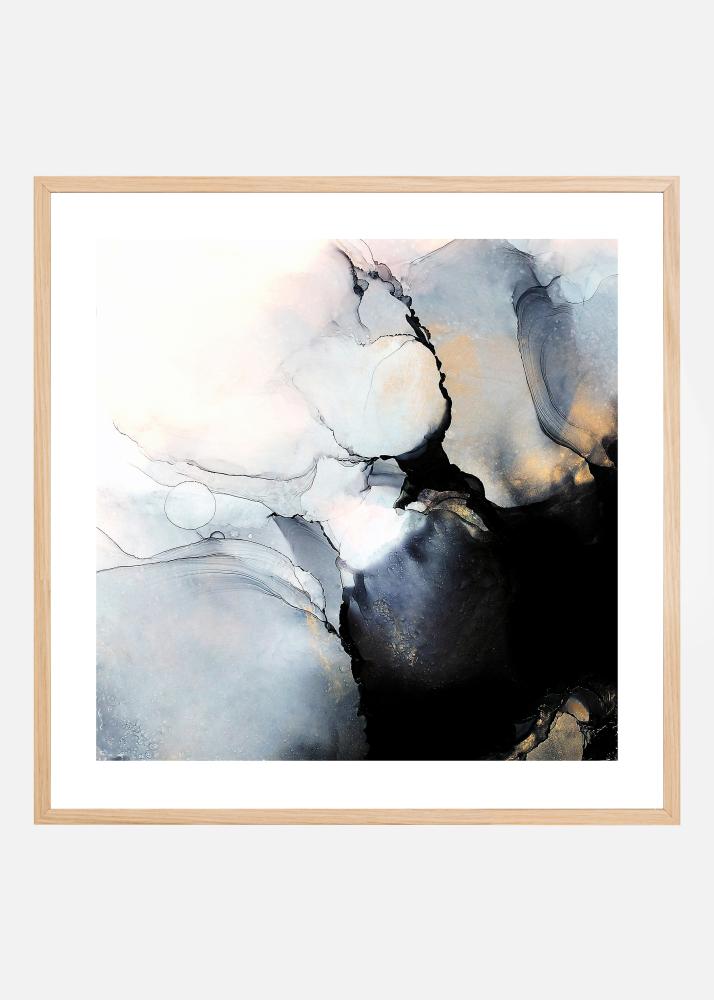 Un poster d'art abstrait magnifique en aquarelle, dans des nuances de noir, bleu et or avec des touches diffuses de rose, créé par l'artiste Gabriella Roberg. Un poster qui se marie à merveille avec l'œuvre d'art DAWN de Gabriella.