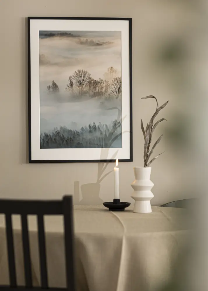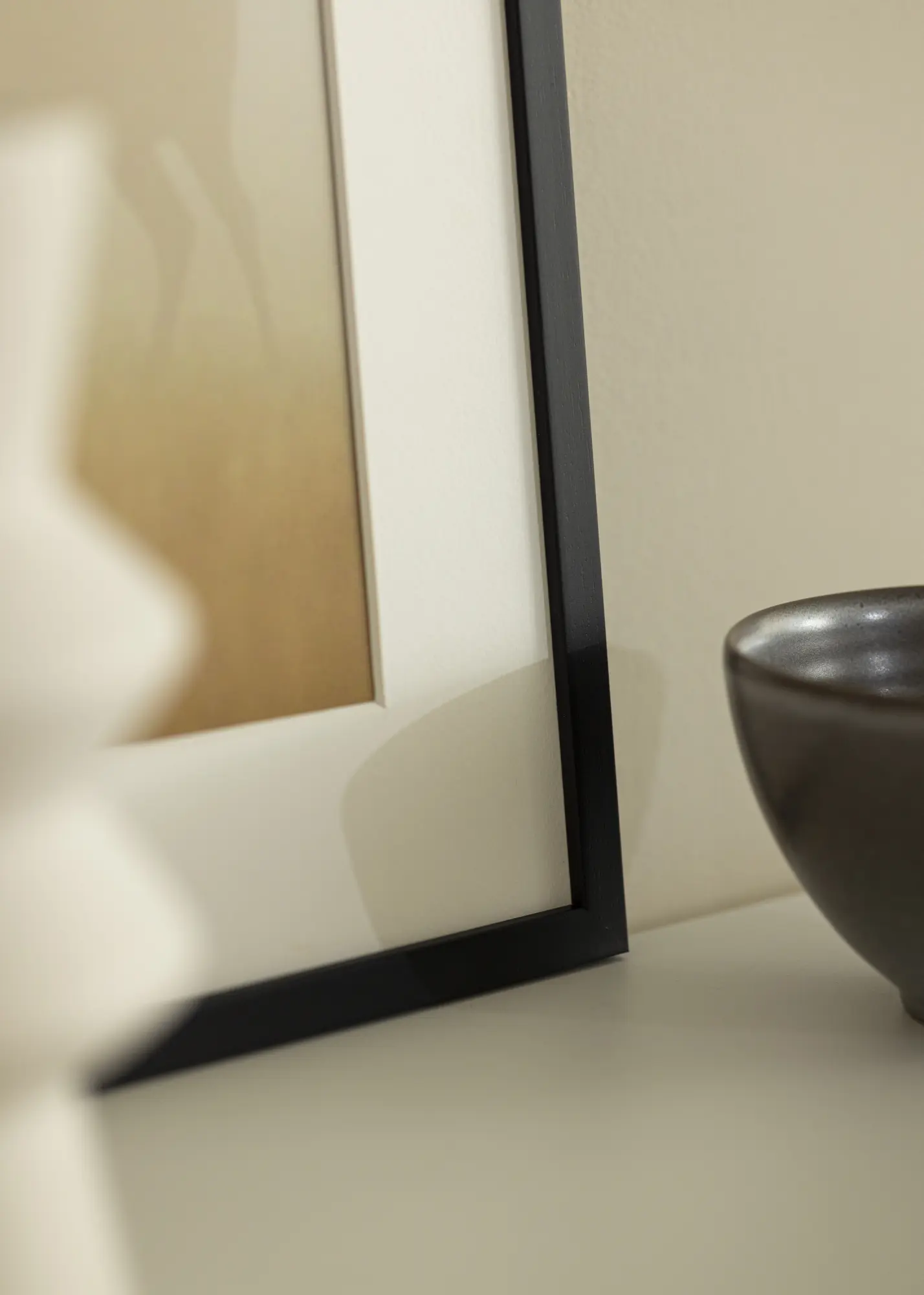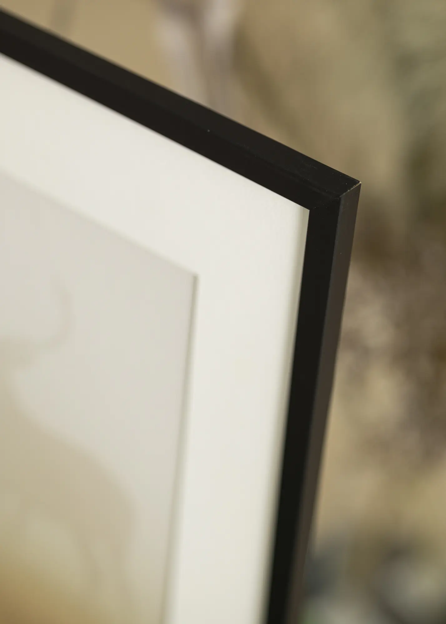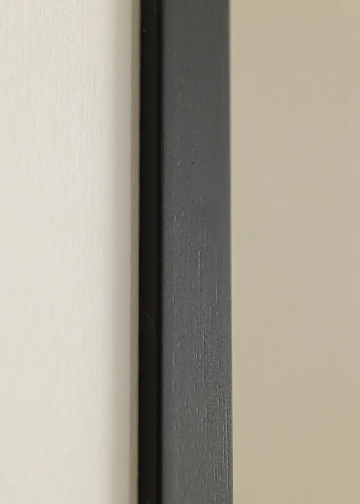 Edsbyn noir est un cadre de qualité fabriqué en Suède en véritable bois d'ayous. Le cadre est peint en noir avec une finition mate lui donnant un look moderne, ce qui est également renforcé par son profil carré. La baguette de cadre est de 13 mm de largeur et de 11,5 mm de profondeur, des dimensions bien équilibrées qui permettent à ce cadre d'être neutre et de bon goût tout en étant robuste et stable.