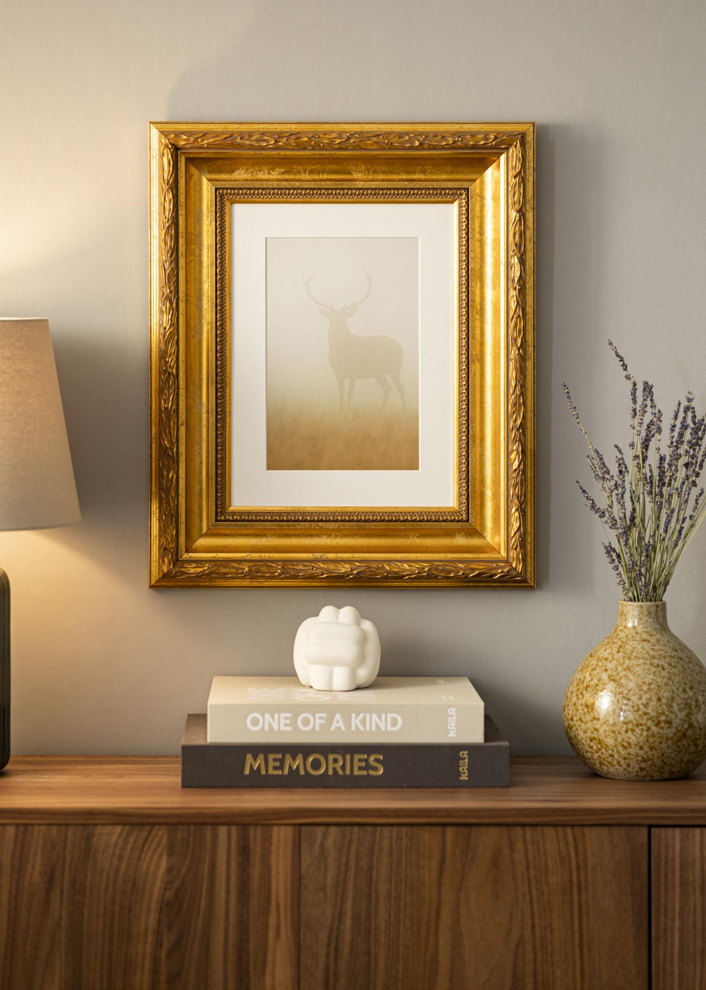 Ram Egypt Ornament Or Gold est un cadre photo exclusif qui donne à vos images une touche d'élégance et de intemporalité. Avec sa teinte profonde et chaude en or ancien et ses détails décoratifs, il devient un bel complément à n'importe quelle pièce. Ce cadre photo est parfait pour ceux qui souhaitent ajouter une dimension supplémentaire de style et de classe à leurs œuvres d'art ou photographies.