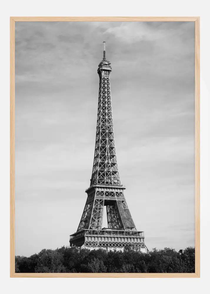 Cette impression est une ode au design intemporel et à l'ingénierie que la tour représente. La coloration en noir et blanc met en valeur les détails géométriques et les lignes fines qui font de la tour Eiffel un symbole d'innovation et d'élégance. Cette affiche s'intégrera parfaitement dans des espaces modernes et minimalistes ainsi que dans des environnements décorés de manière plus traditionnelle, ajoutant une touche de nostalgie française à chaque pièce.