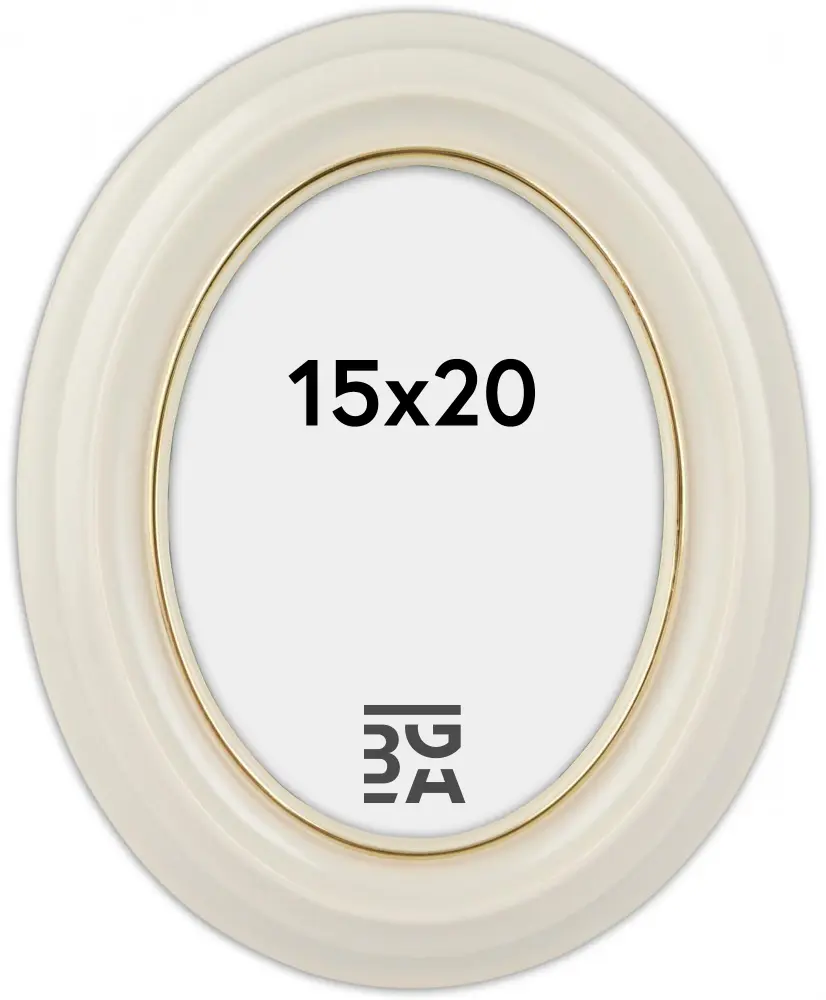 Eiri Mozart est un superbe cadre ovale blanc fabriqué en Finlande, ce qui garantit une très haute qualité. Au plus proche du motif se trouve un bord fin de couleur or, mais le reste du profil du cadre est complètement blanc.