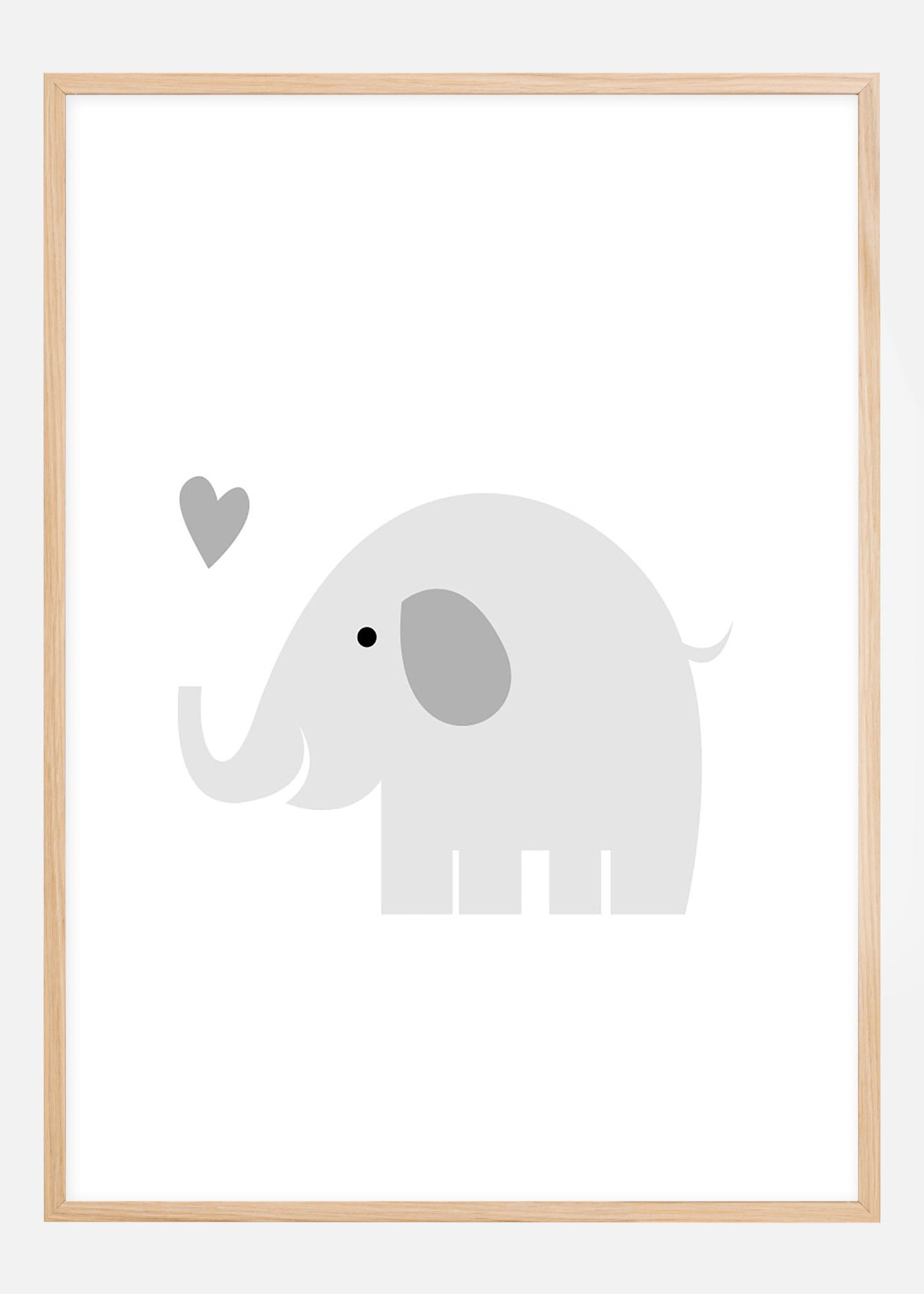 Affiche avec une impression graphique d'un mignon éléphant et un cœur dans une nuance de gris fumée sur fond blanc. Parfait pour ceux qui aiment tous les animaux de la savane, mais convient peut-être surtout dans les chambres des plus jeunes enfants. Le poster peut être combiné avec d'autres posters d'animaux ou d'éléphants dans le même jeu de couleurs, pour créer une merveilleuse ambiance de conte de fées dans la chambre d'enfant.