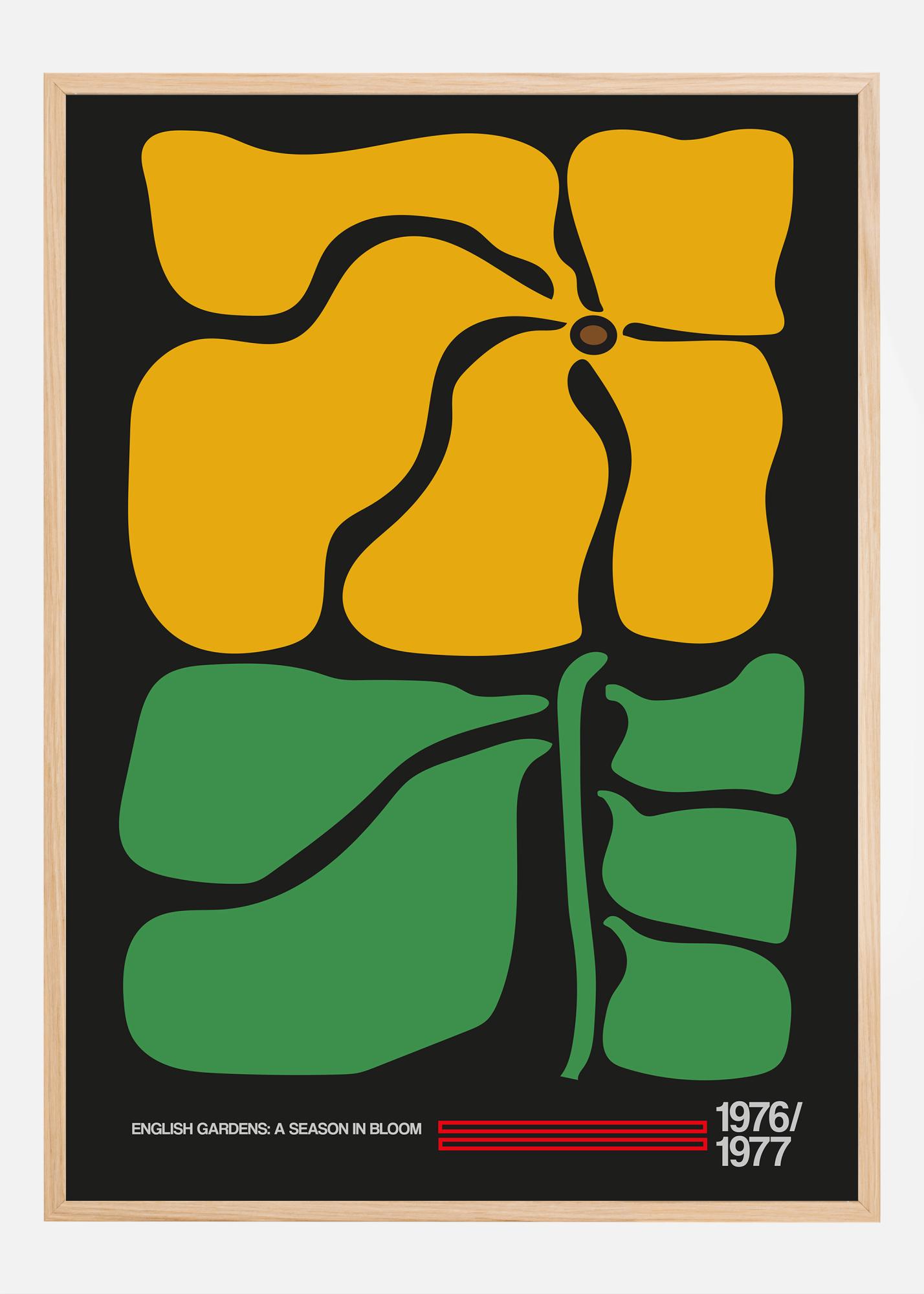 Cette affiche est une interprétation élégante et conceptuelle des merveilles de la nature, et le texte '1976/1977' évoque une sensation d'événement historique ou récurrent, comme une floraison annuelle ou une exposition spéciale. Le design est minimaliste, mais expressif, et utilise des formes géométriques pour représenter une fleur et ses feuilles de manière presque abstraite. C'est un choix idéal pour tous ceux qui apprécient l'art capturant l'essence de la nature sans la dépeindre sous sa forme littérale. Cette affiche suscitera certainement des conversations et l'admiration dans chaque pièce où elle est exposée.