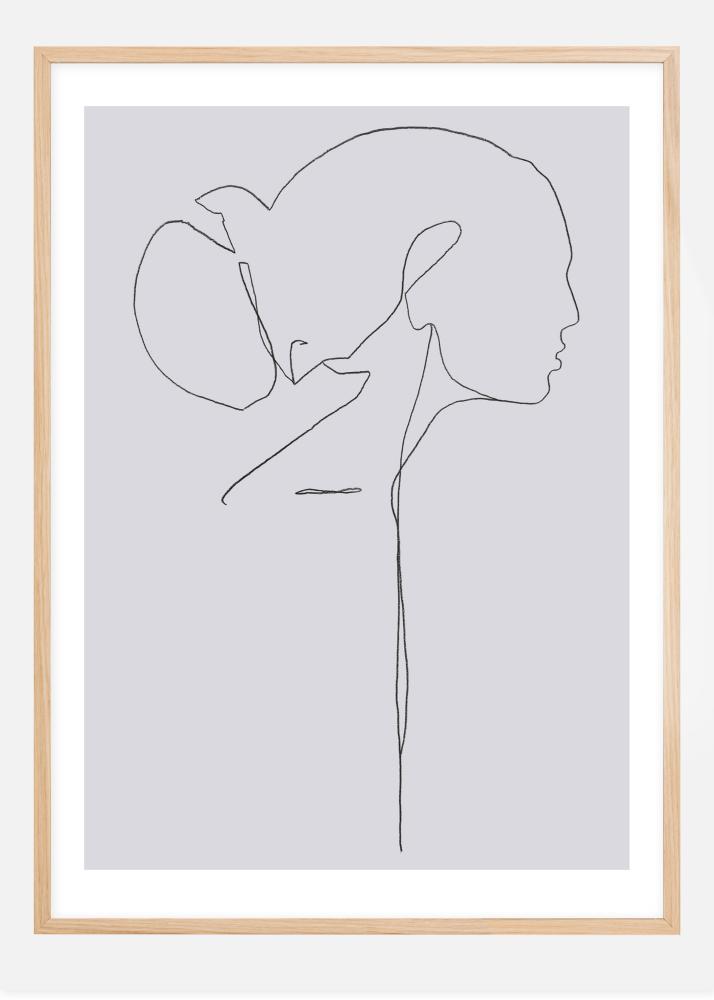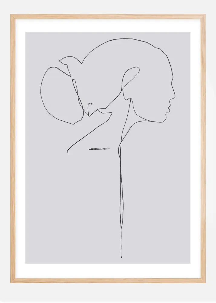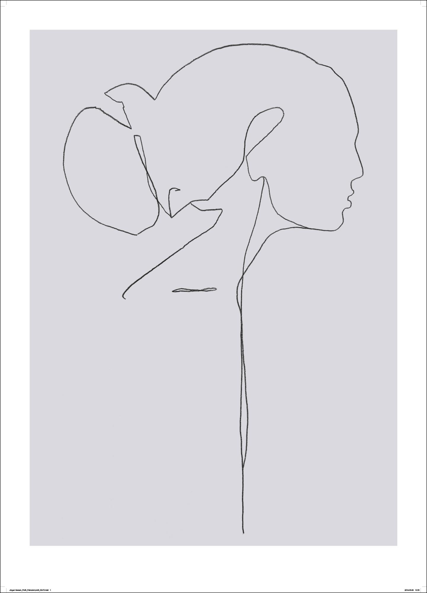Beau et élégant art linéaire sous forme d'une femme avec les cheveux attachés représentée de profil, créé par Jörgen Hansson Art. Un poster idéal à combiner avec les autres Female Lines de Jörgen Hansson pour un collage sur le même thème.