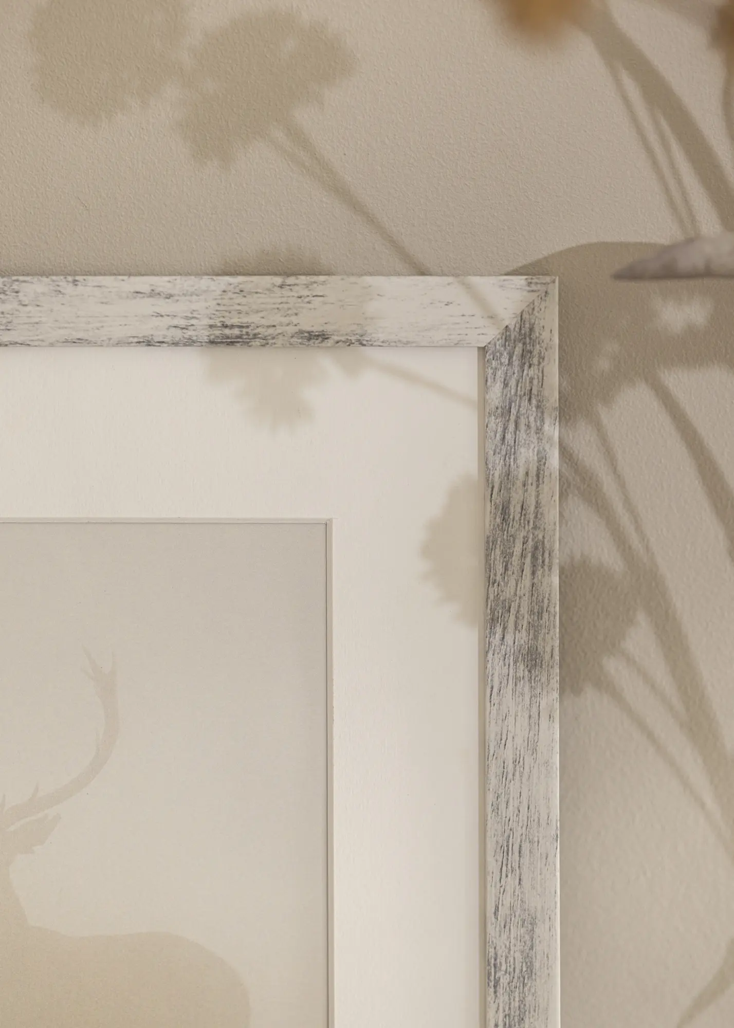 Ce cadre photo au look chêne peint en blanc a une sensation rustique et romantique. Un cadre avec cet aspect usé décoratif donnant l'impression qu'il n’est pas tout neuf. Le profil a une inclinaison discrète vers l'intérieur du verre, ce qui donne à votre motif un encadrement élégant qui crée beaucoup d’effet.