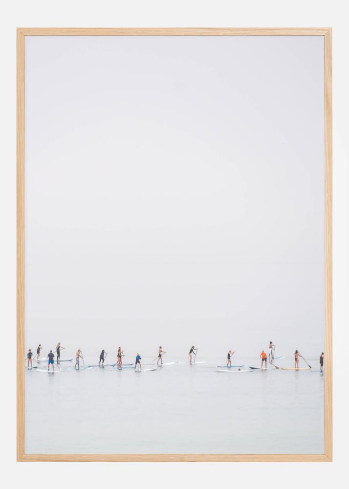 Une affiche grand-angle d'un groupe d'enfants jouant dans la mer. Absorbez l'immensité de cette pièce minimaliste. Tous les enfants sont alignés sur le fond, tandis que la mer et le ciel s'étendent au-dessus et au-dessous d'eux. Créez l'illusion de la lumière et de l'espace avec cette œuvre expansive.
