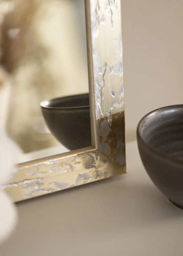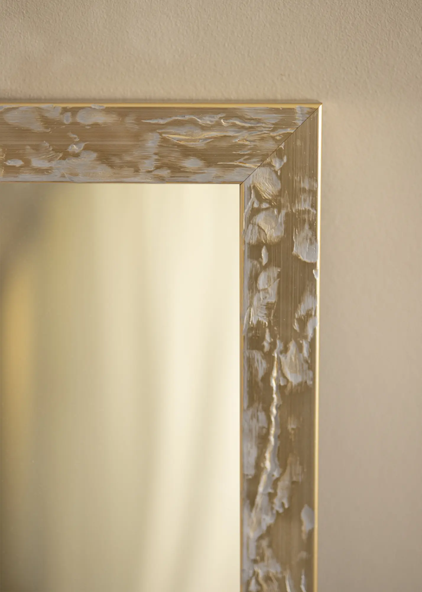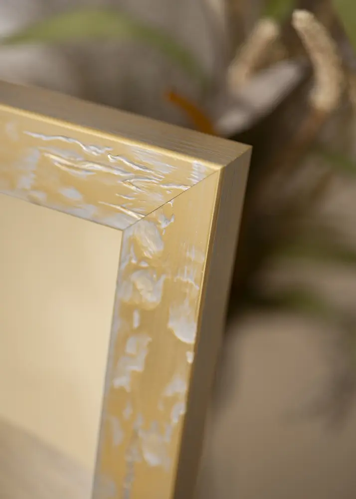 Freja est un superbe cadre doré avec une surface veinée aux irrégularités argentées. Avec sa combinaison de couleur argent et or, Freja obtient une tonalité de couleur agréable qui tire plus vers l’argent que l'or. Avec sa profondeur de profil de 30 mm, Freja Or ressort un peu du mur, ce qui donne un sublime effet 3D. Le cadre comprend le verre et le carton de fond.