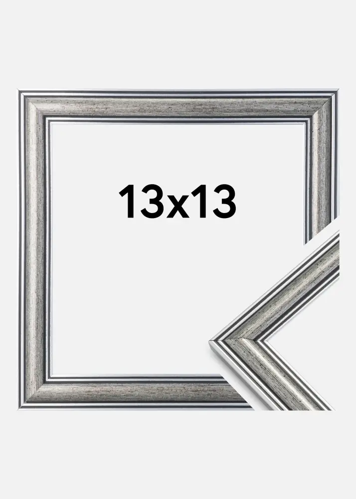Frigg est un cadre argenté avec des lignes noires et des éléments tachetés en noir. Parfait lorsque vous recherchez un large cadre argenté traditionnel qui convient à de nombreux types d'images et de décorations.