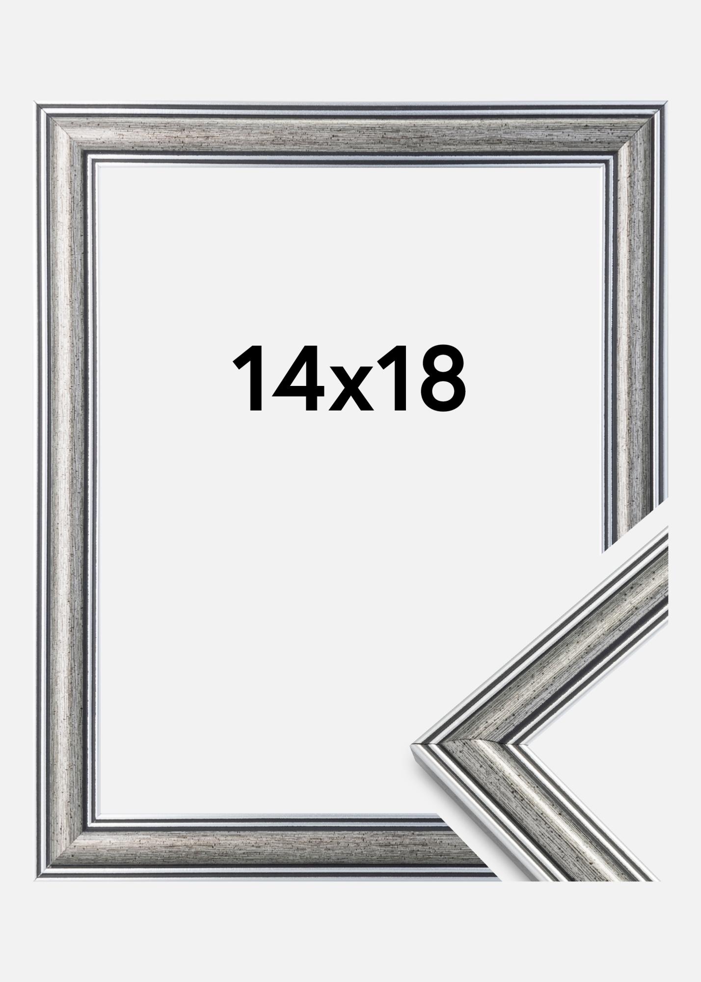 Frigg est un cadre argenté avec des lignes noires et des éléments tachetés en noir. Parfait lorsque vous recherchez un large cadre argenté traditionnel qui convient à de nombreux types d'images et de décorations.
