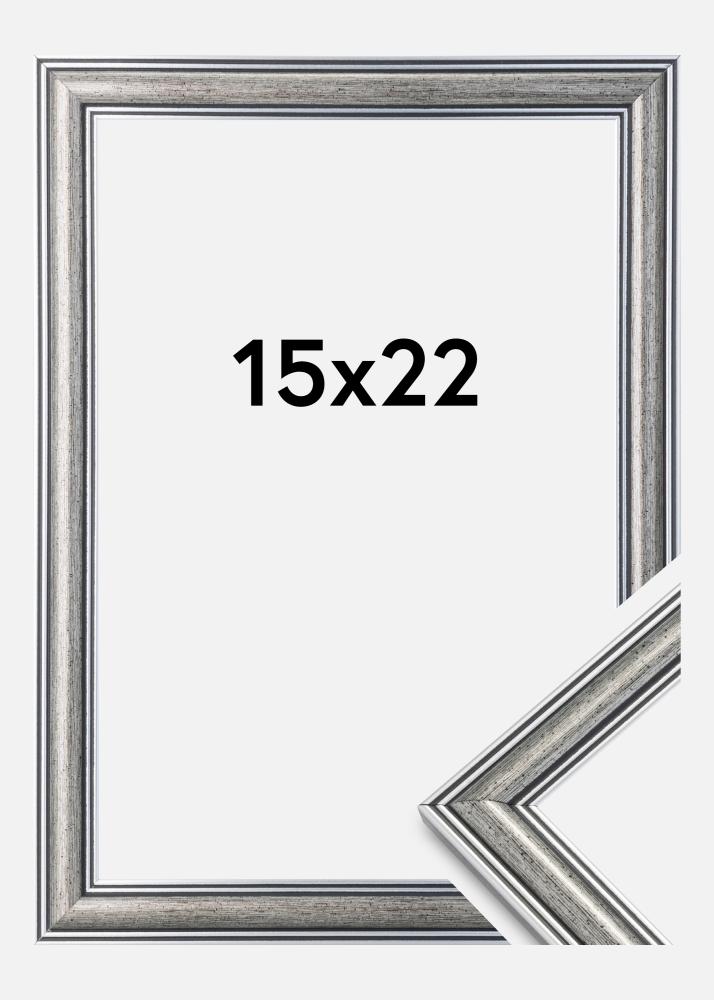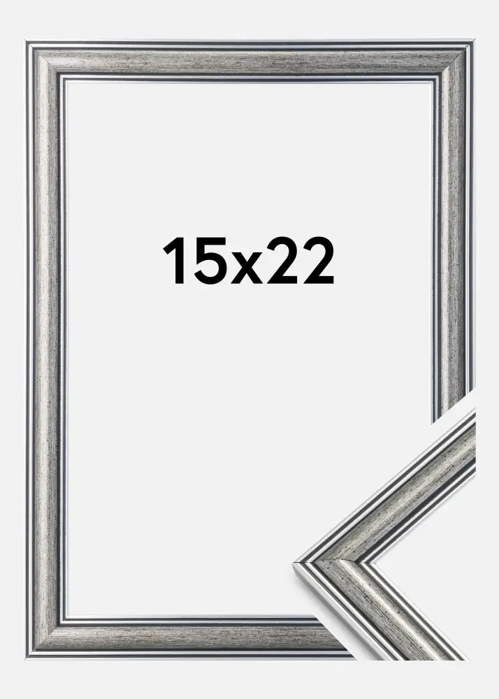Frigg est un cadre argenté avec des lignes noires et des éléments tachetés en noir. Parfait lorsque vous recherchez un large cadre argenté traditionnel qui convient à de nombreux types d'images et de décorations.