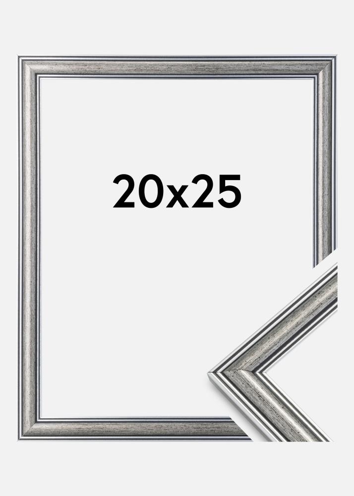 Frigg est un cadre argenté avec des lignes noires et des éléments tachetés en noir. Parfait lorsque vous recherchez un large cadre argenté traditionnel qui convient à de nombreux types d'images et de décorations.