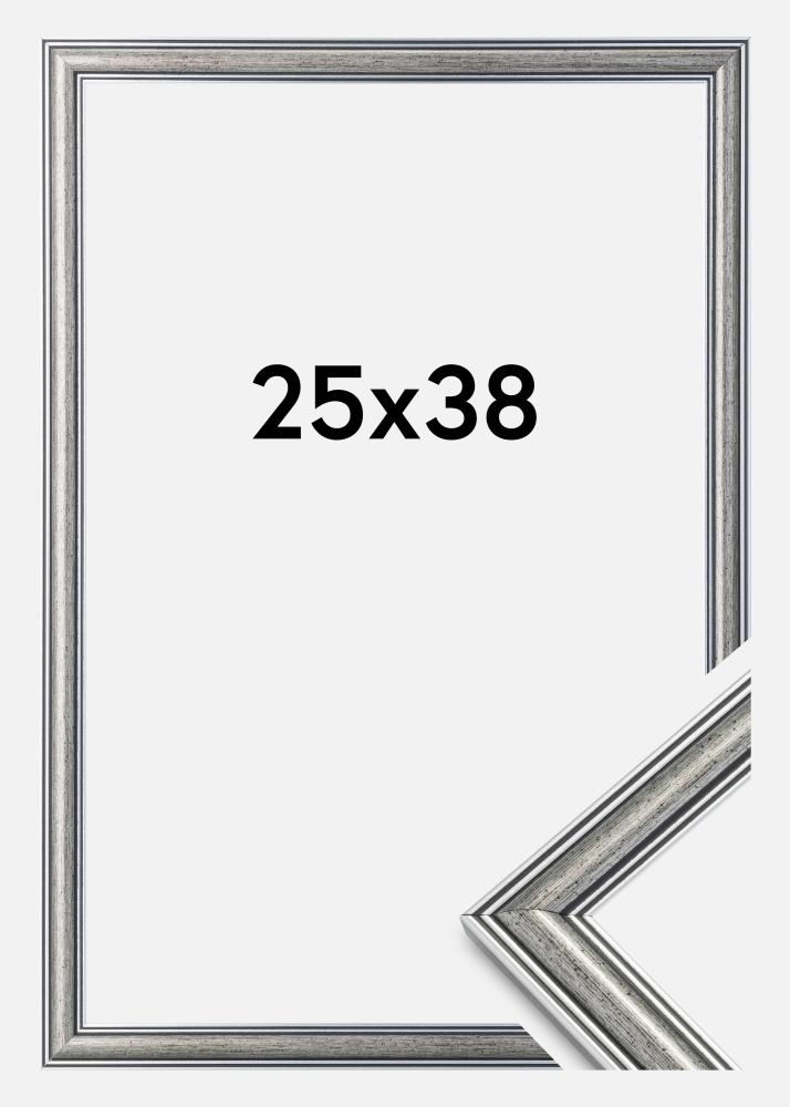 Frigg est un cadre argenté avec des lignes noires et des éléments tachetés en noir. Parfait lorsque vous recherchez un large cadre argenté traditionnel qui convient à de nombreux types d'images et de décorations.