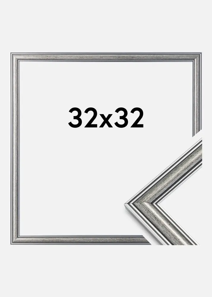 Frigg est un cadre argenté avec des lignes noires et des éléments tachetés en noir. Parfait lorsque vous recherchez un large cadre argenté traditionnel qui convient à de nombreux types d'images et de décorations.