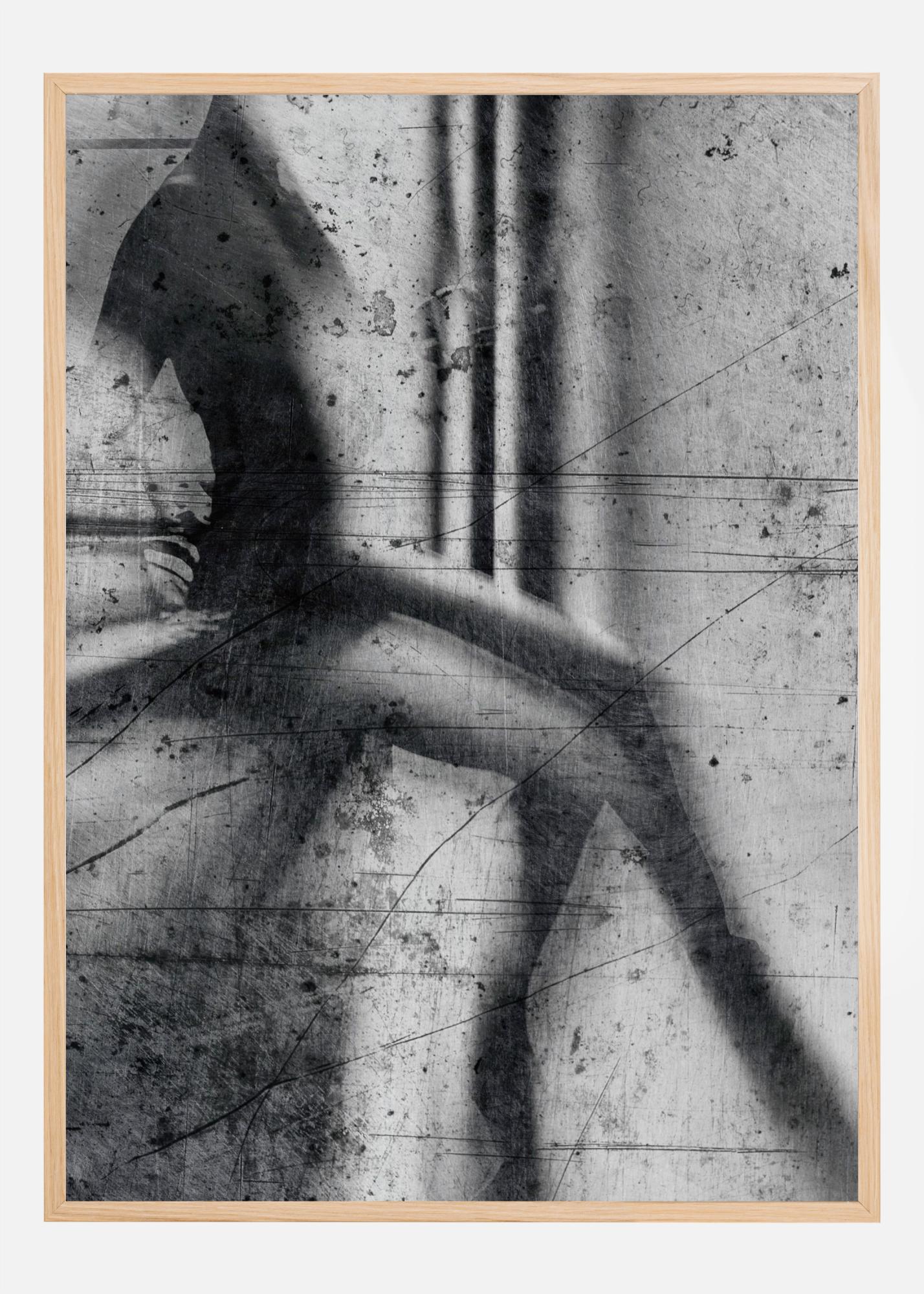 Une affiche abstraite d'une femme assise sur un mur. L'image en noir et blanc est pleine de lignes et de bords doux pour créer cette pièce artistique impressionniste. Ajoutez-la à un mur blanc pour un effet spectaculaire, ou associez-la à une couleur vive pour plus d'effet.