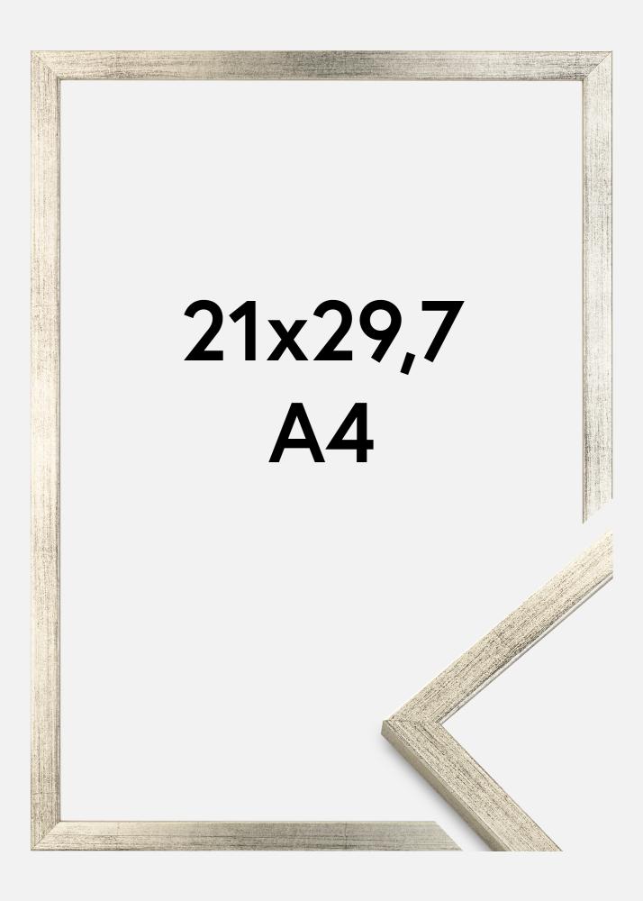 Élégant cadre en bois au profil droit qui a une formidable sensation vintage et une surface argentée usée avec des éléments tachetés de noir. Avec son profil doux de couleur argentée, Galant Argent est un cadre qui convient à pratiquement tous les types d'images.