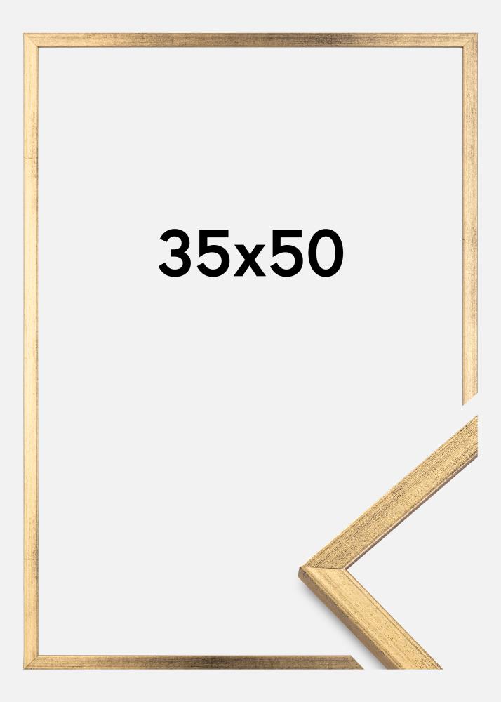 Élégant cadre en bois au profil droit qui a une formidable sensation vintage et une surface dorée usée avec des éléments tachetés de noir. Avec son profil doux de couleur dorée, Galant Or est un cadre qui convient à pratiquement tous les types d'images.