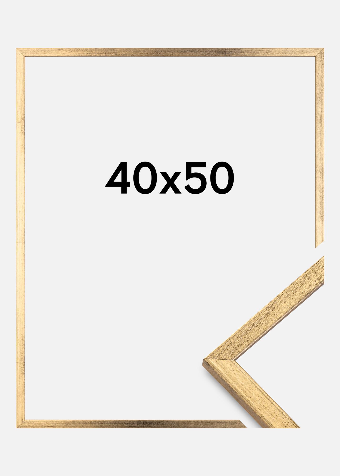 Élégant cadre en bois au profil droit qui a une formidable sensation vintage et une surface dorée usée avec des éléments tachetés de noir. Avec son profil doux de couleur dorée, Galant Or est un cadre qui convient à pratiquement tous les types d'images.