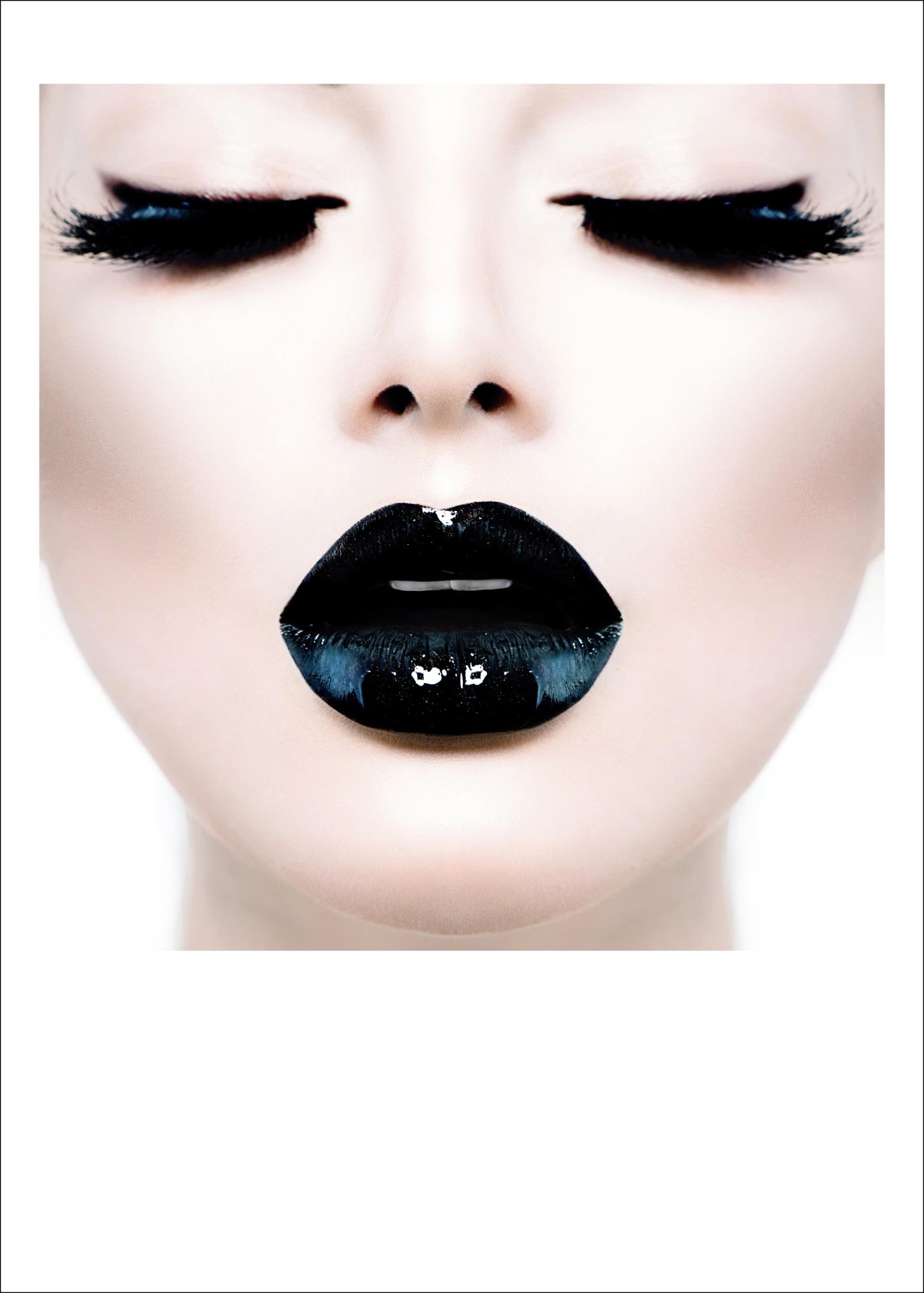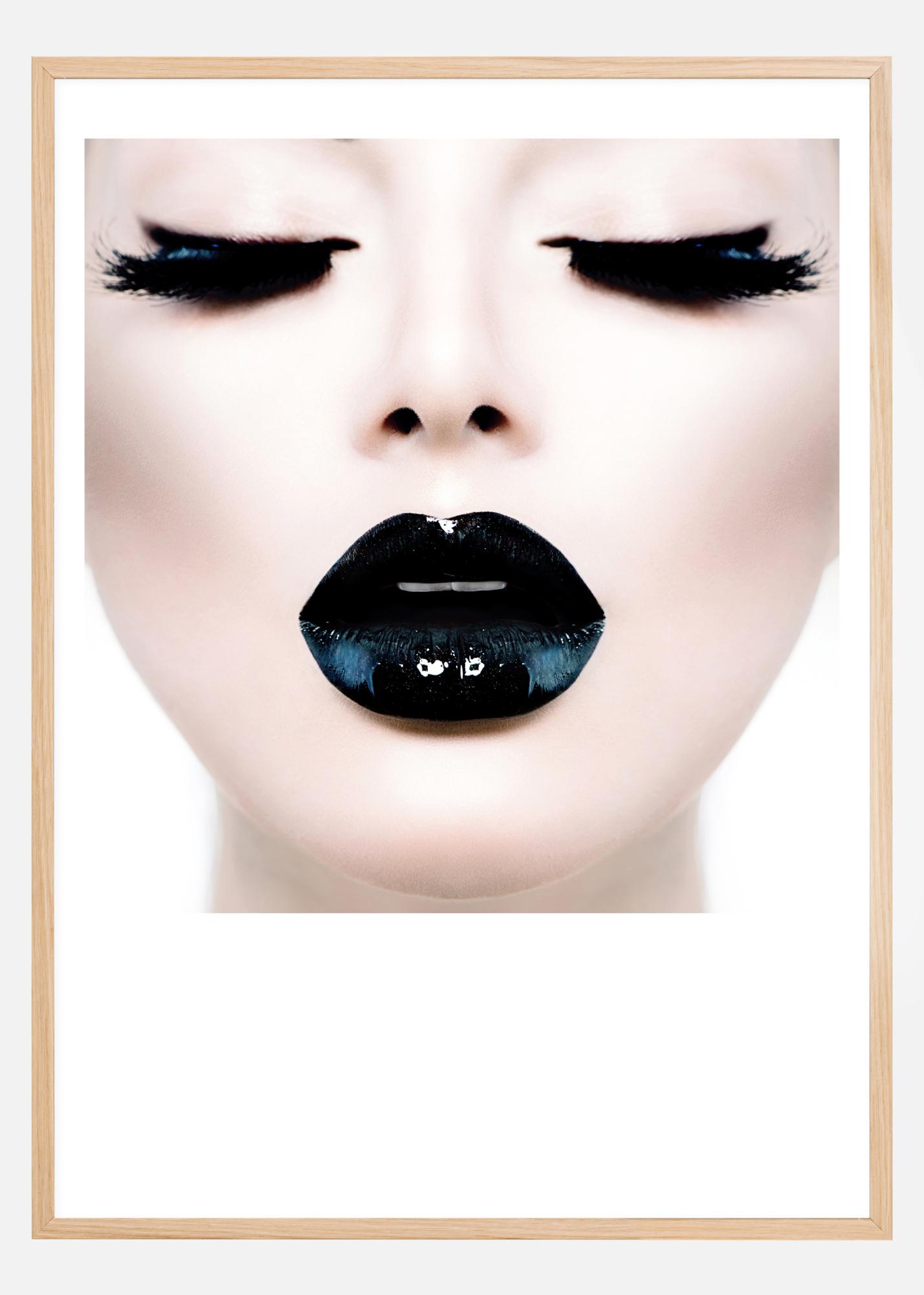 Un poster d'art photographique remarquablement distinctif sur le thème de la mode ! Ici, des lèvres noires charnues et de denses cils noirs rencontrent une peau blanche comme de la porcelaine et un fond blanc. Un poster élégant et plein de contrastes, facile à combiner avec d'autres favoris sur un plus grand mur de tableaux.