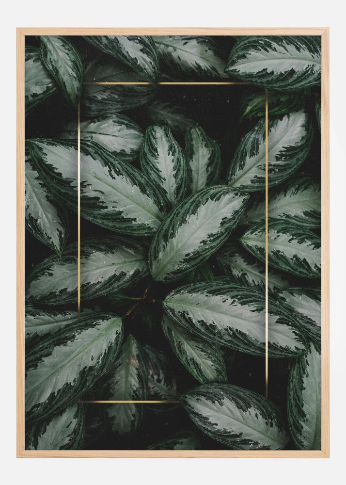 Avec ses teintes audacieuses et vives de vert, cette affiche offre une touche rafraîchissante de nature dans votre maison ou bureau. Le motif dépeint une collection dense de feuilles, dont les motifs détaillés dans différentes nuances de vert sur un fond sombre mettent en valeur leur beauté naturelle. Chaque feuille, avec sa texture vivante et ses stries sombres contrastantes, crée une dynamique visuelle à la fois apaisante et énergisante. Cette impression rend hommage au design simple mais complexe de la nature, idéal pour ceux qui souhaitent introduire des éléments naturels et organiques dans leur décoration.