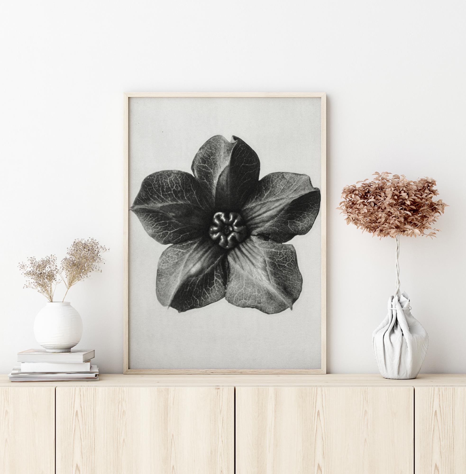Une belle impression botanique représentant une seule plante en pleine floraison. Une affiche simple mais magnifique peinte en noir et blanc représentant une fleur à cinq pétales. Ornez votre mur d'un imprimé botanique pour créer un aspect naturel dans votre maison.